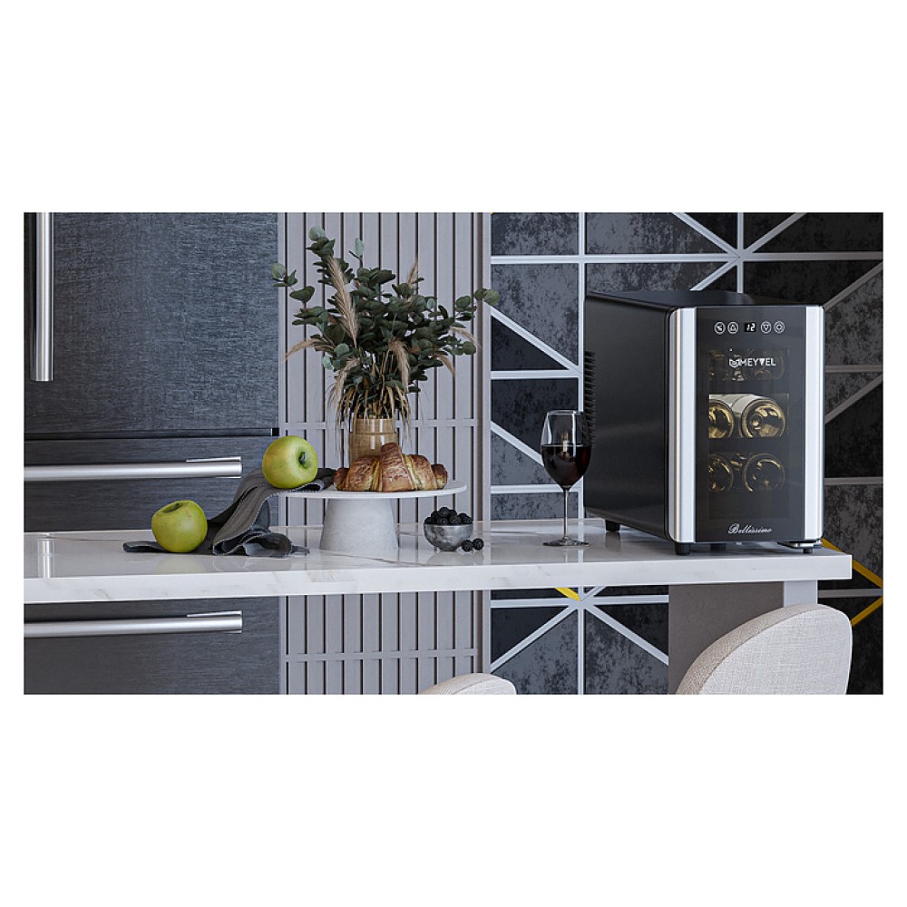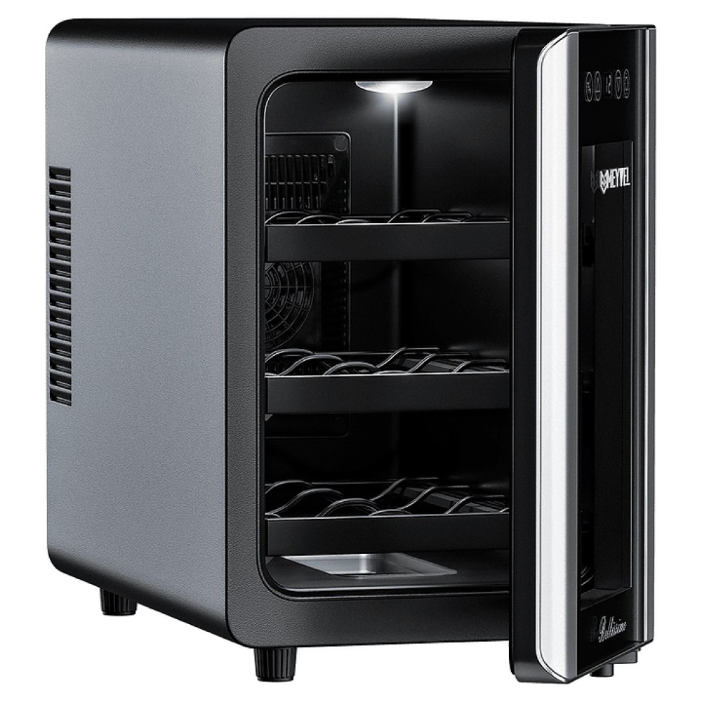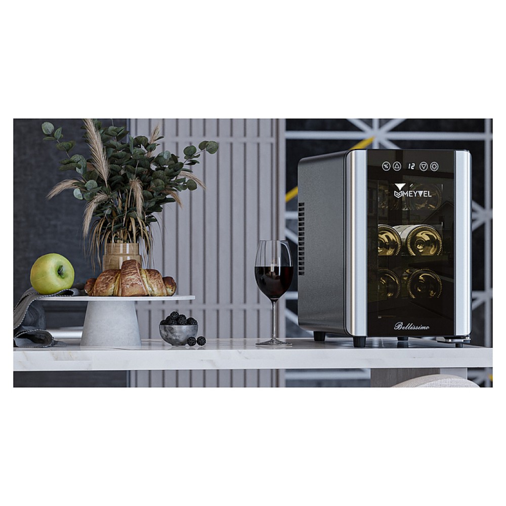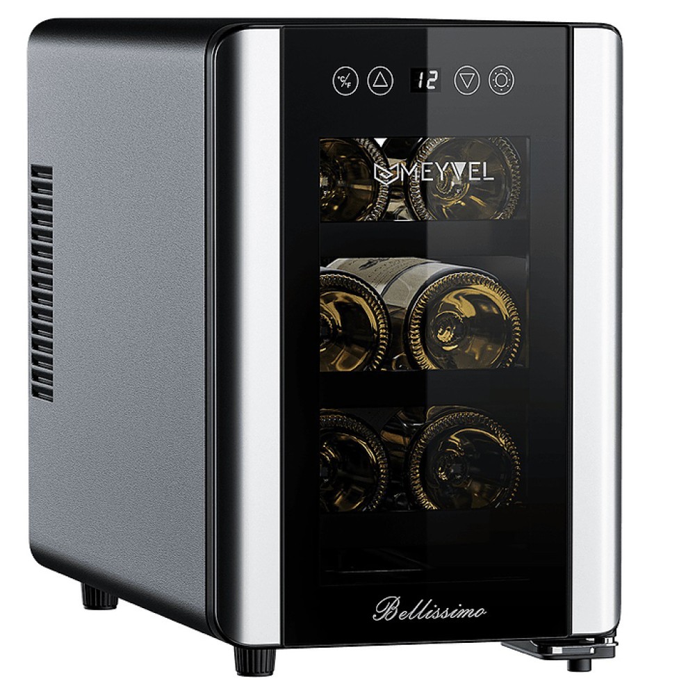 Винный шкаф MEYVEL MV06-BSF1 (easy) предназначен для демонстрации, хранения и создания оптимальных условий для сохранения всех вкусовых свойств вина в бутылках на предприятиях общественного питания, торговли, в барах, ресторанах, специализированных магазинах, частных домах или квартирах. Модель оснащена сенсорной панелью управления, электронным термостатом и светодиодной подсветкой. Корпус выполнен из окрашенной в черный цвет стали, дверь - из двойного стекла с защитой от ультрафиолетовых лучей, полки - из хромированного металла.