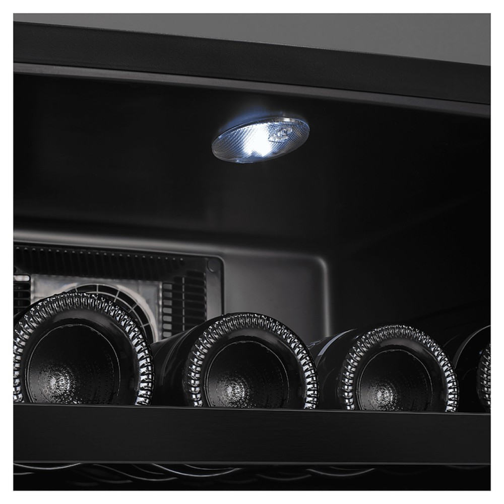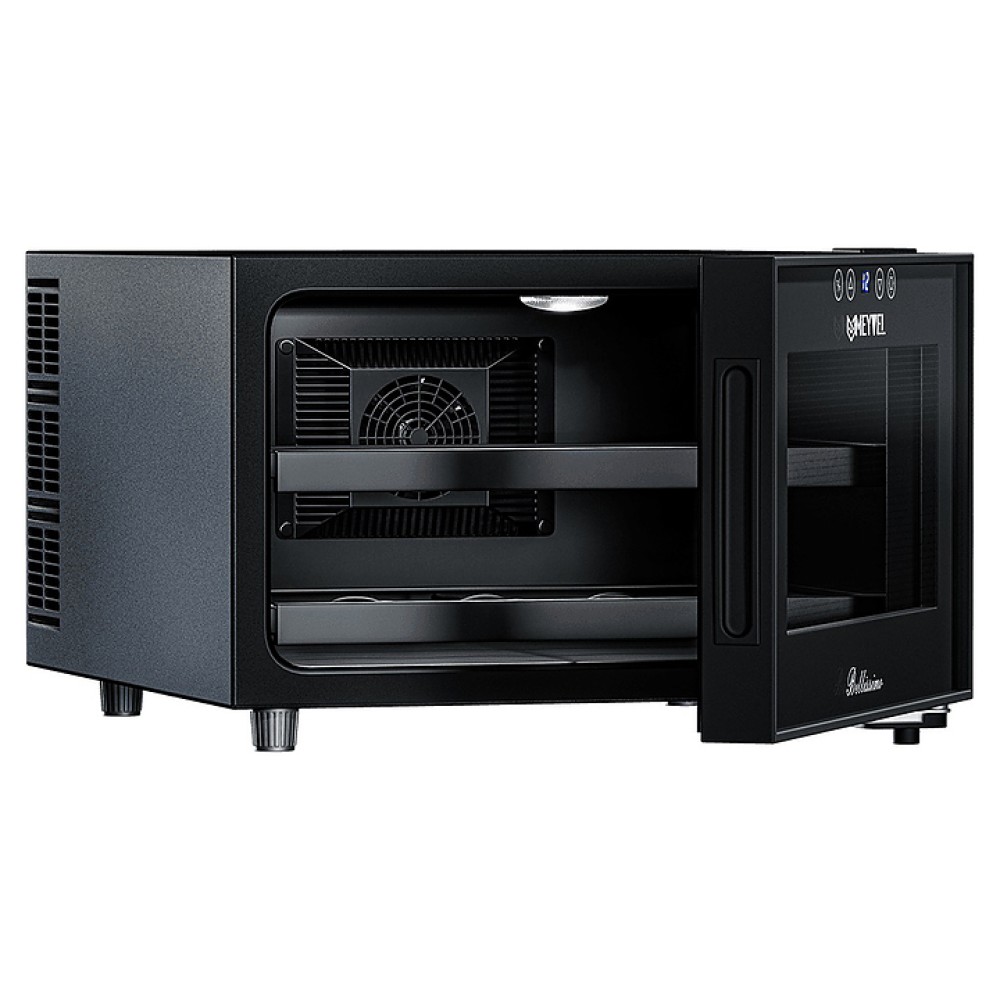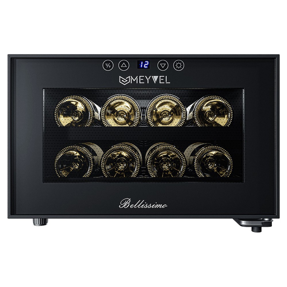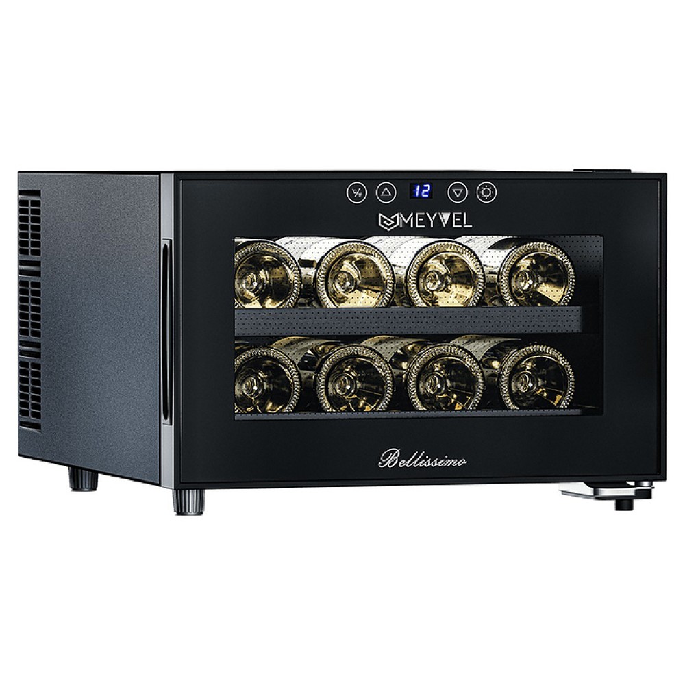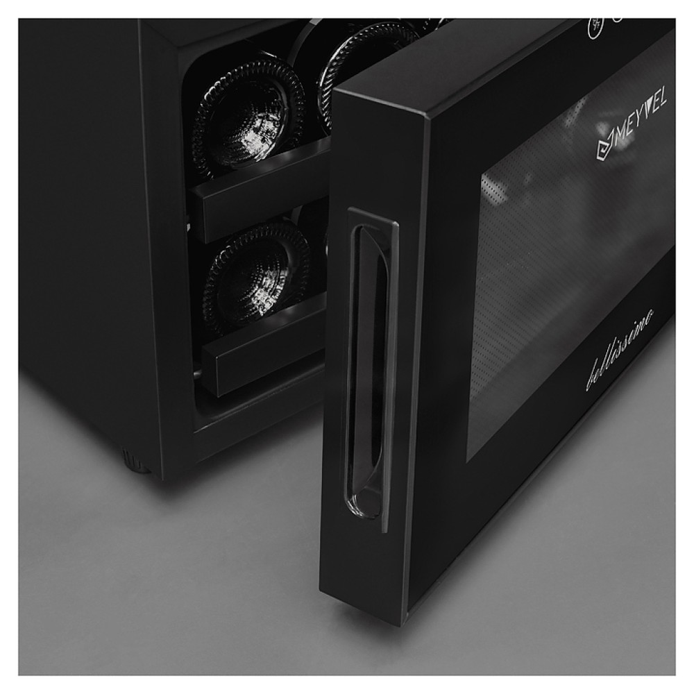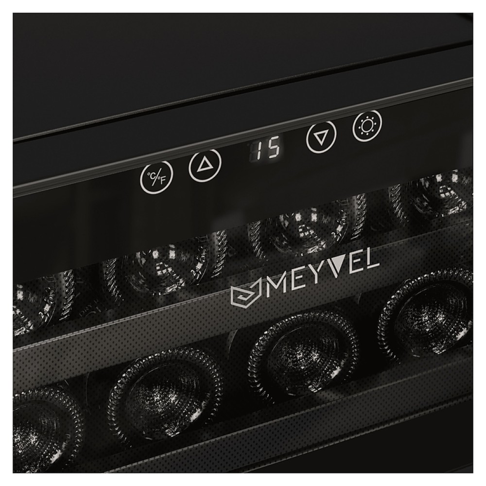Винный шкаф MEYVEL MV08-BF1 (easy) предназначен для демонстрации, хранения и создания оптимальных условий для сохранения всех вкусовых свойств вина в бутылках на предприятиях общественного питания, торговли, в барах, ресторанах, специализированных магазинах, частных домах или квартирах. Модель оснащена сенсорной панелью управления, электронным термостатом и светодиодной подсветкой. Корпус выполнен из окрашенной в черный цвет стали, дверь - из пластика и двойного стекла с защитой от ультрафиолетовых лучей, полки - из хромированного металла.