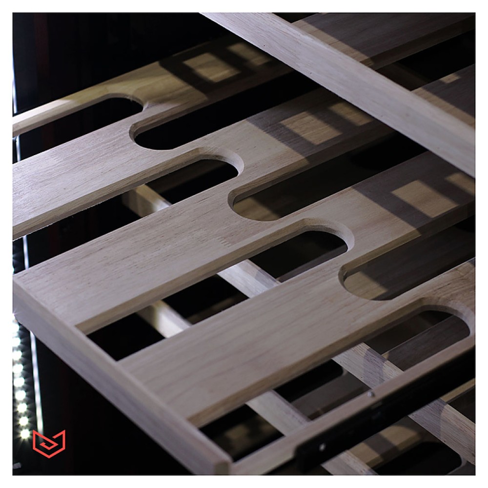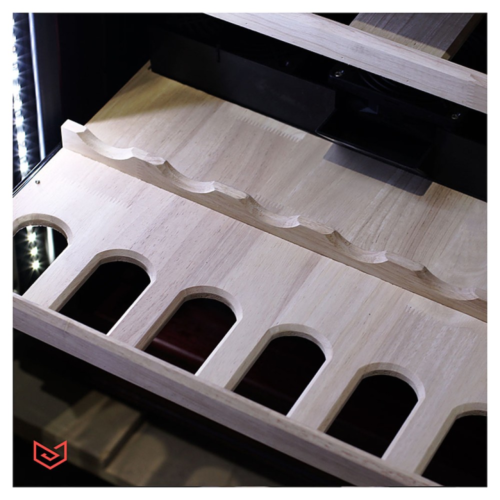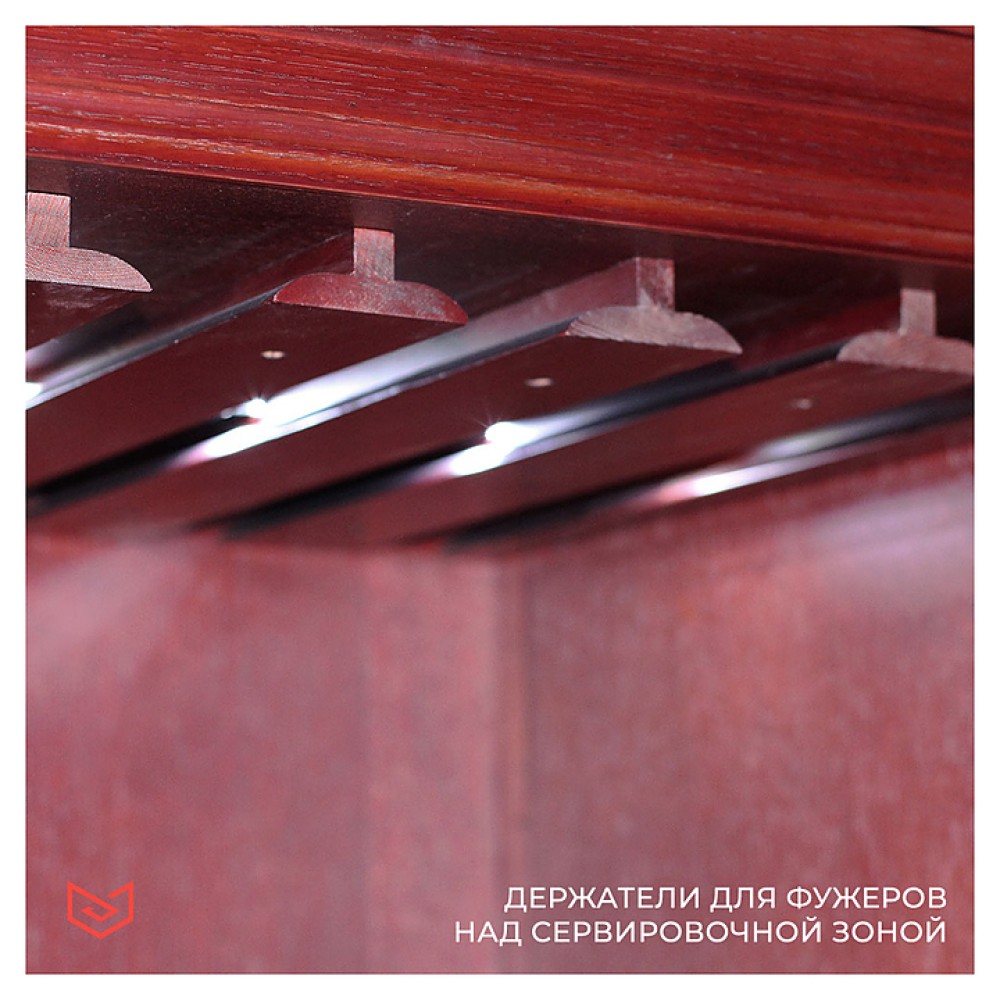 Винный шкаф MEYVEL MV108-WM2-BAR-HUM предназначен для демонстрации, хранения и создания оптимальных условий для сохранения всех вкусовых свойств вина в бутылках на предприятиях общественного питания, торговли, в барах, ресторанах, специализированных магазинах, частных домах или квартирах. Модель оснащена сенсорной панелью управления, электронным термостатом и светодиодной подсветкой. Корпус выполнен из красного дуба, дверь - из деревянной рамы и тройного стекла с защитой от ультрафиолетовых лучей, полки - из массива бука.