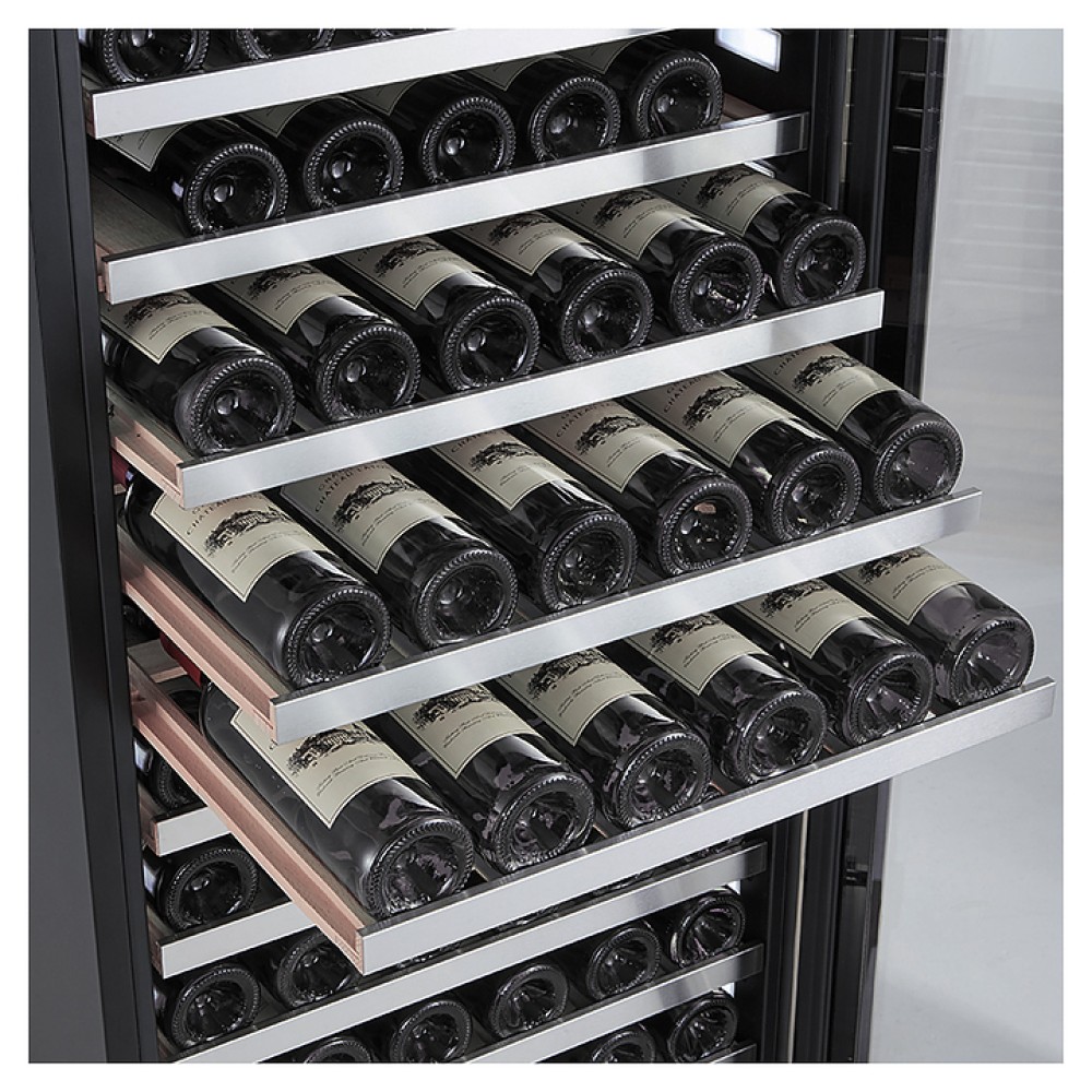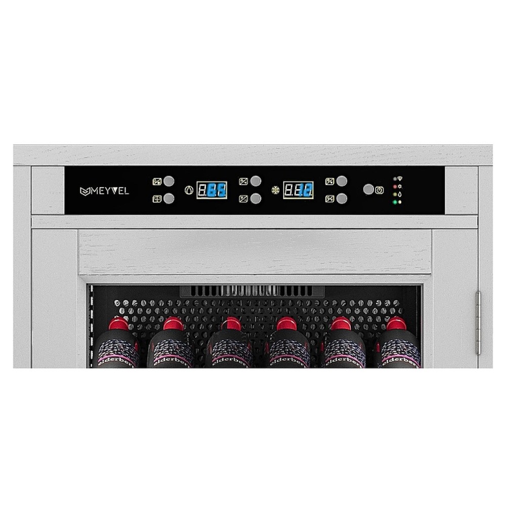 Винный шкаф MEYVEL MV108-WW1-M предназначен для демонстрации, хранения и создания оптимальных условий для сохранения всех вкусовых свойств вина в бутылках на предприятиях общественного питания, торговли, в барах, ресторанах, специализированных магазинах, частных домах или квартирах. Модель оснащена сенсорной панелью управления, электронным термостатом и светодиодной подсветкой. Корпус выполнен из обшитой деревом стали, дверь - из деревянной рамы и двойного стекла с защитой от ультрафиолетовых лучей, полки - из массива бука, ручка двери - черного цвета.