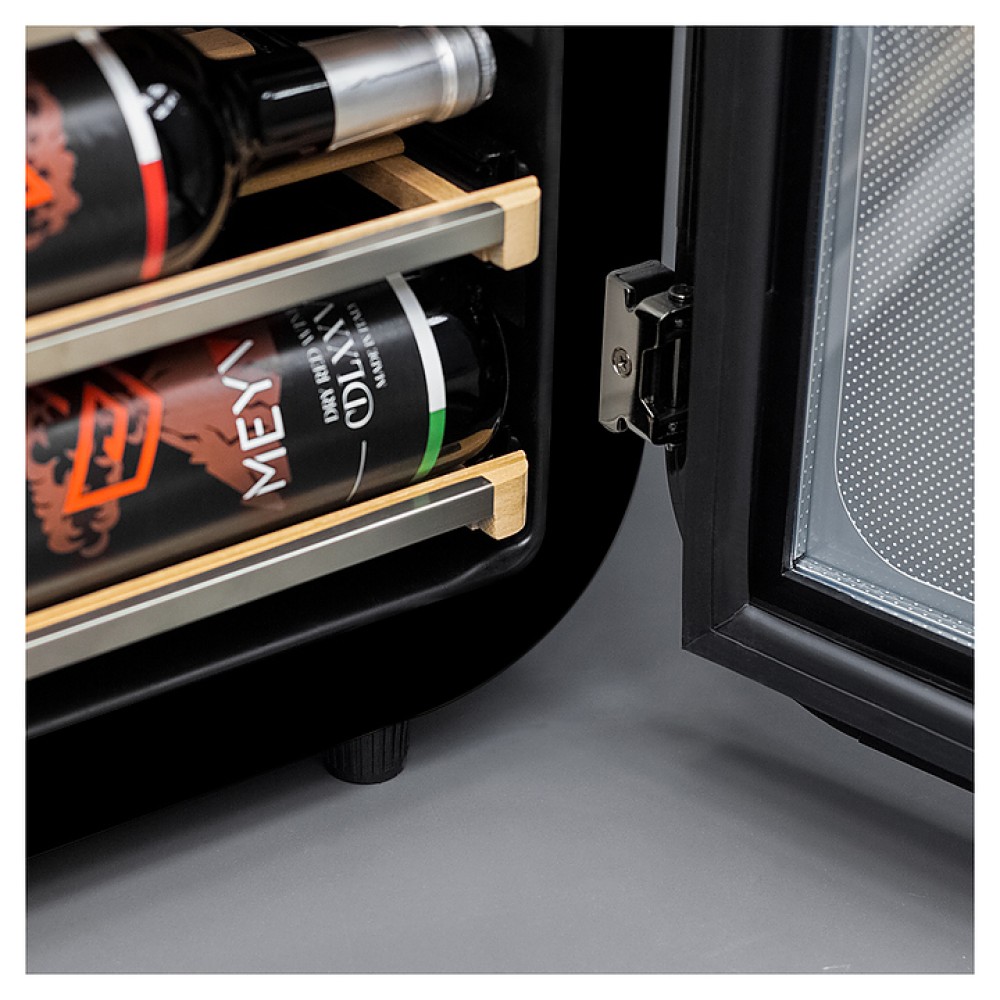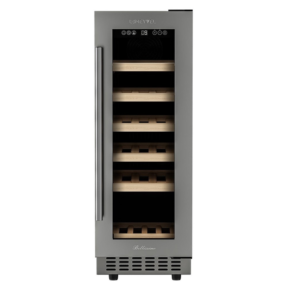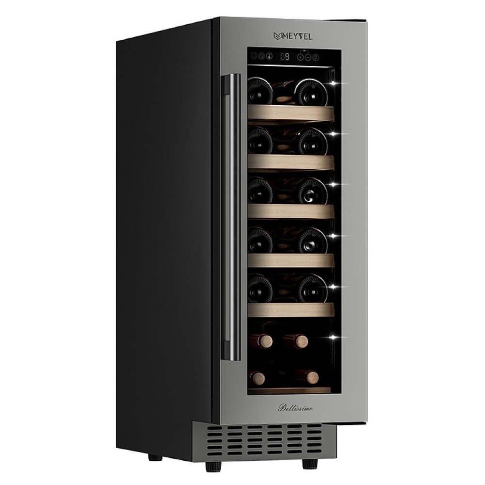 Винный шкаф MEYVEL MV19-KST1 предназначен для демонстрации, хранения и создания оптимальных условий для сохранения всех вкусовых свойств вина в бутылках на предприятиях общественного питания, торговли, в барах, ресторанах, специализированных магазинах, частных домах или квартирах. Модель оснащена сенсорной панелью управления, электронным термостатом, демонстрационным и панорманым освещением. Корпус и ручка выполнены из стали, дверная рама - из бесшовной нержавеющей стали, дверь - из тройного стекла с защитой от ультрафиолетовых лучей, полки - из массива бука.