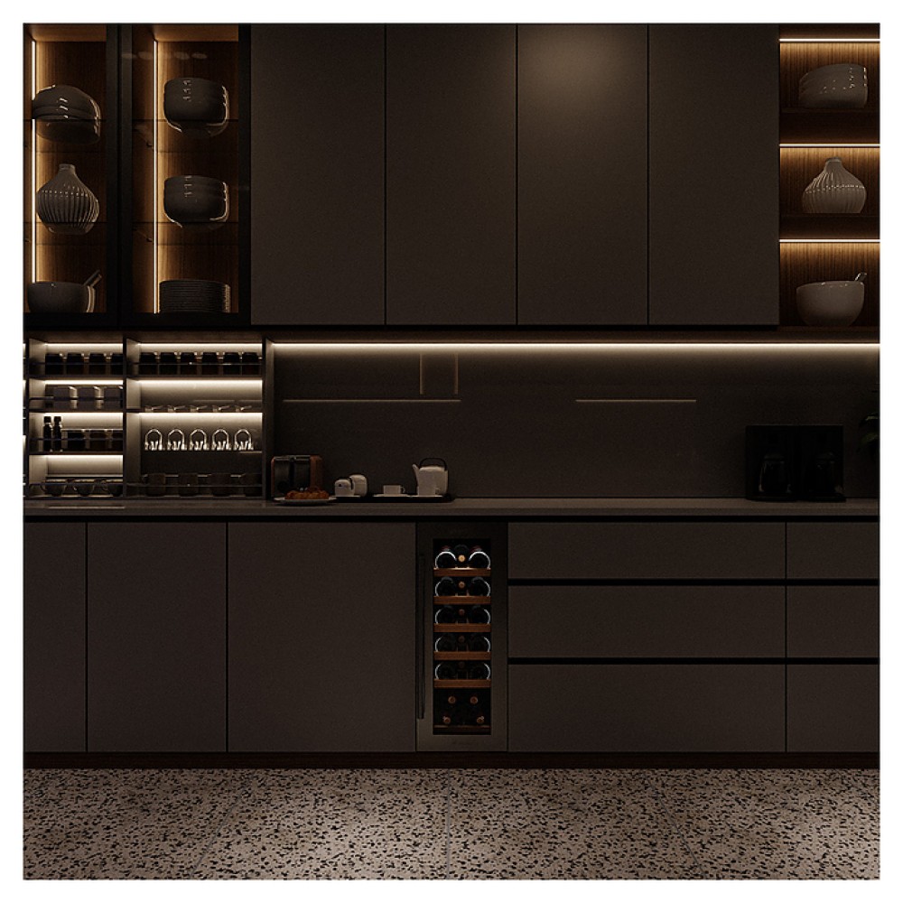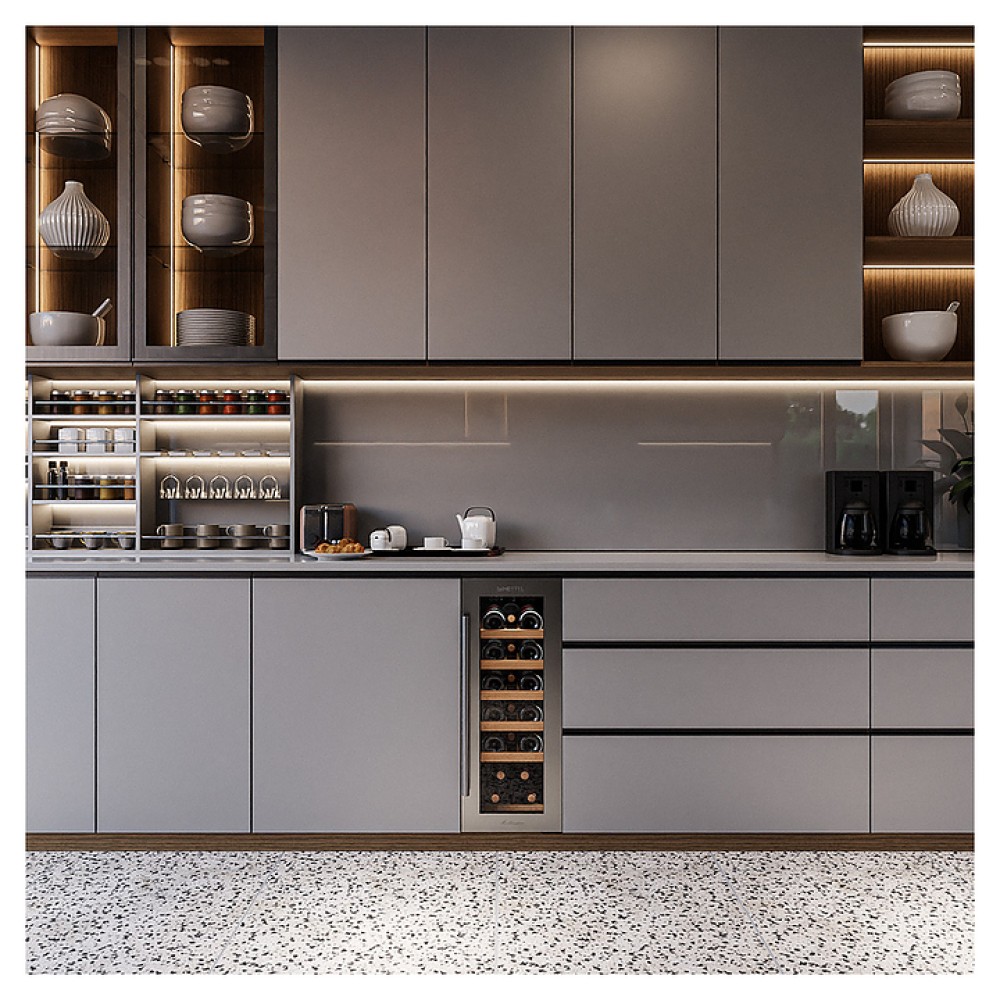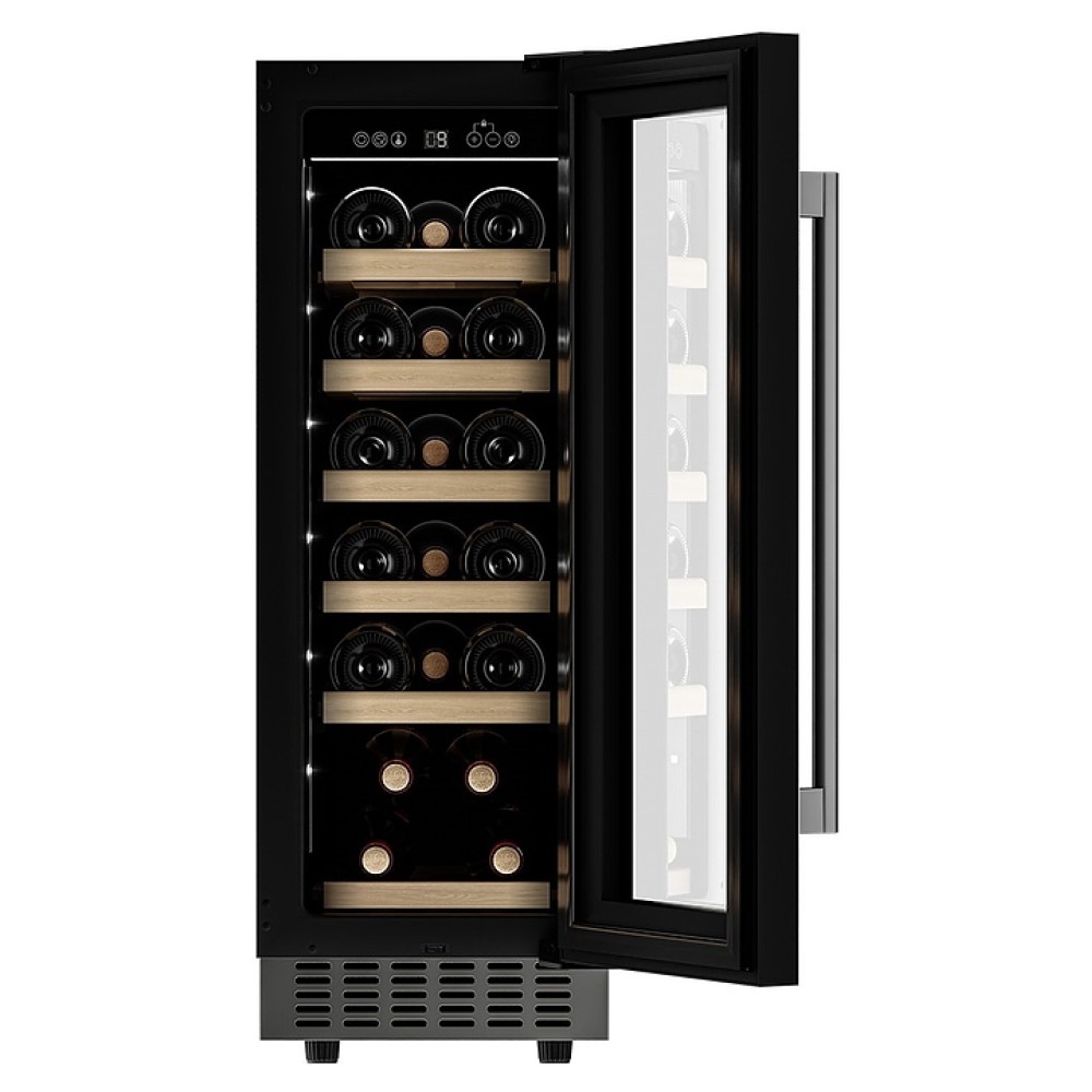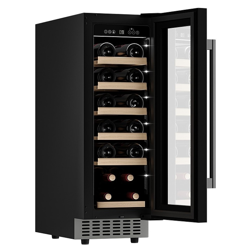 Винный шкаф MEYVEL MV19-KST1 предназначен для демонстрации, хранения и создания оптимальных условий для сохранения всех вкусовых свойств вина в бутылках на предприятиях общественного питания, торговли, в барах, ресторанах, специализированных магазинах, частных домах или квартирах. Модель оснащена сенсорной панелью управления, электронным термостатом, демонстрационным и панорманым освещением. Корпус и ручка выполнены из стали, дверная рама - из бесшовной нержавеющей стали, дверь - из тройного стекла с защитой от ультрафиолетовых лучей, полки - из массива бука.