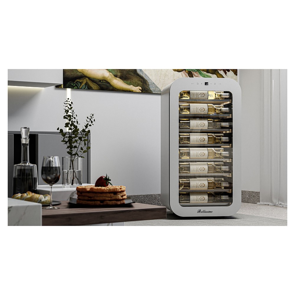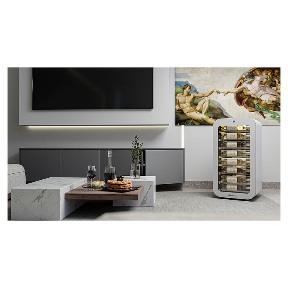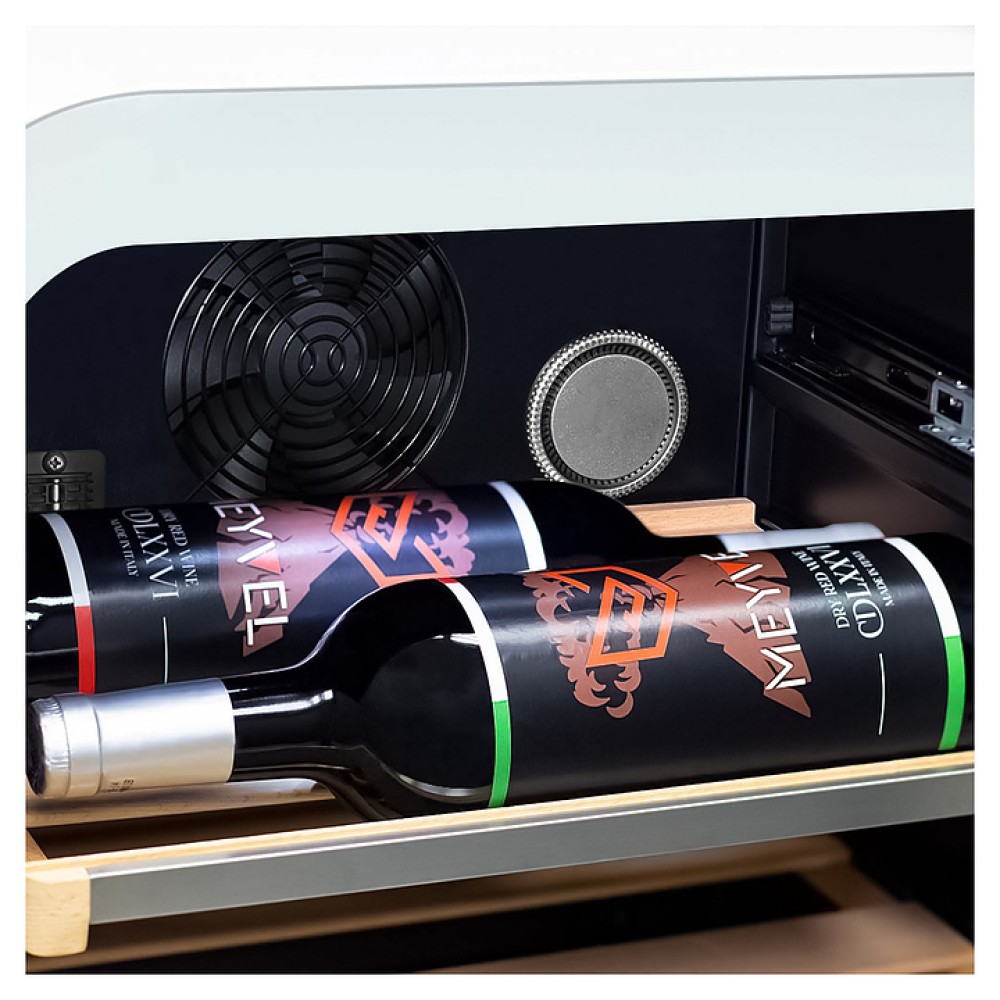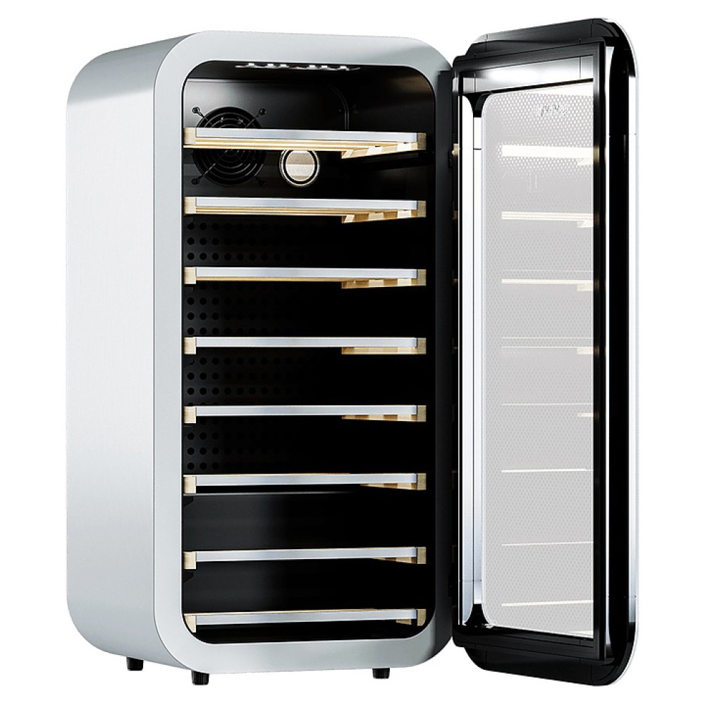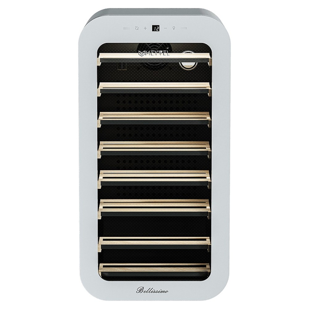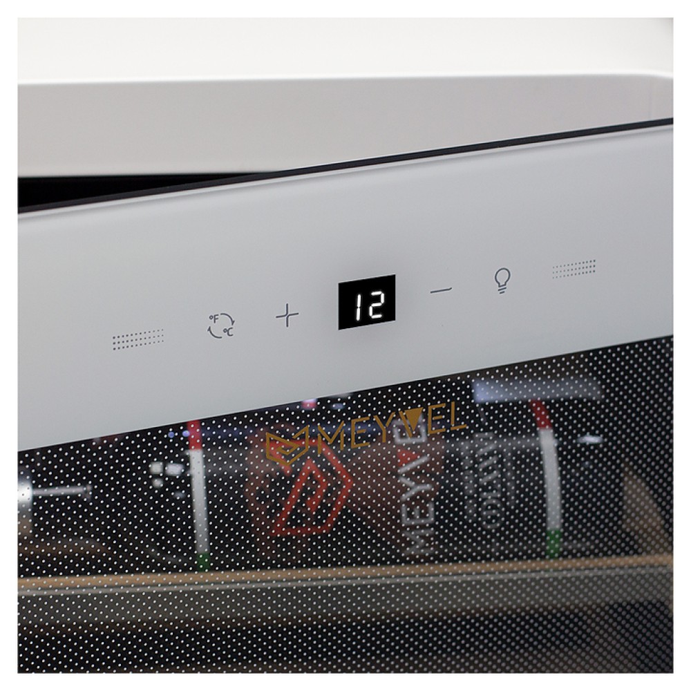 Винный шкаф MEYVEL MV22-KWF1 предназначен для демонстрации, хранения и создания оптимальных условий для сохранения всех вкусовых свойств вина в бутылках на предприятиях общественного питания, торговли, в барах, ресторанах, специализированных магазинах, частных домах или квартирах. Модель оснащена сенсорной панелью управления, электронным термостатом и белой светодиодной подсветкой. Корпус выполнен из окрашенной в белый цвет стали, дверь - из тройного стекла с защитой от ультрафиолетовых лучей, полки - из массива бука.