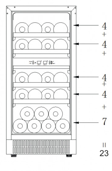| Вес (без упаковки)34 кг | Вес(С упаковкой)38 кг | Вместимость23 бут. |