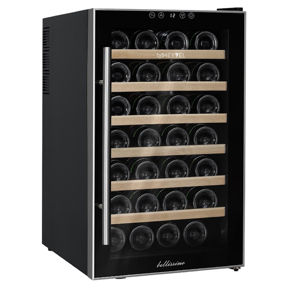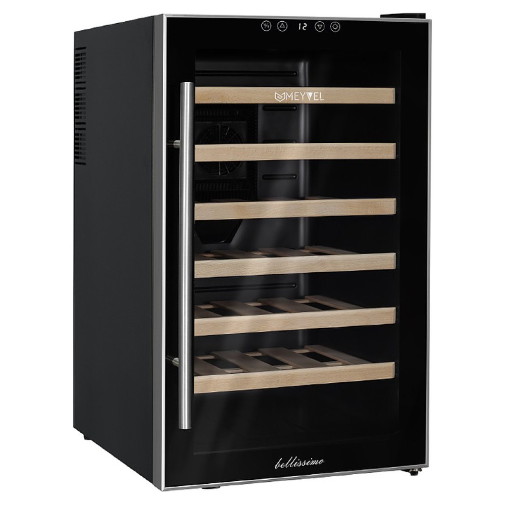 Винный шкаф MEYVEL MV28-BF1 (easy) предназначен для демонстрации, хранения и создания оптимальных условий для сохранения всех вкусовых свойств вина в бутылках на предприятиях общественного питания, торговли, в барах, ресторанах, специализированных магазинах, частных домах или квартирах. Модель оснащена сенсорной панелью управления, электронным термостатом и отключаемой внутренней LED подсветкой. Корпус выполнен из окрашенной в черный цвет стали, дверь - из двойного стекла с УФ защитой со стальной окантовкой, ручка двери - из стали, полки - из массива бука.
