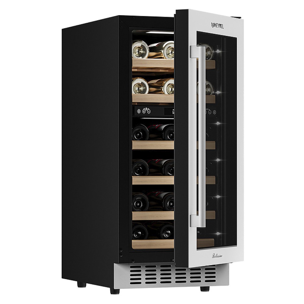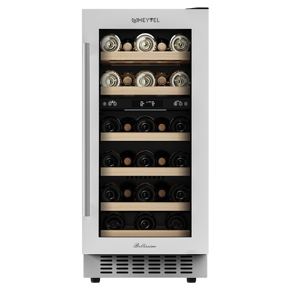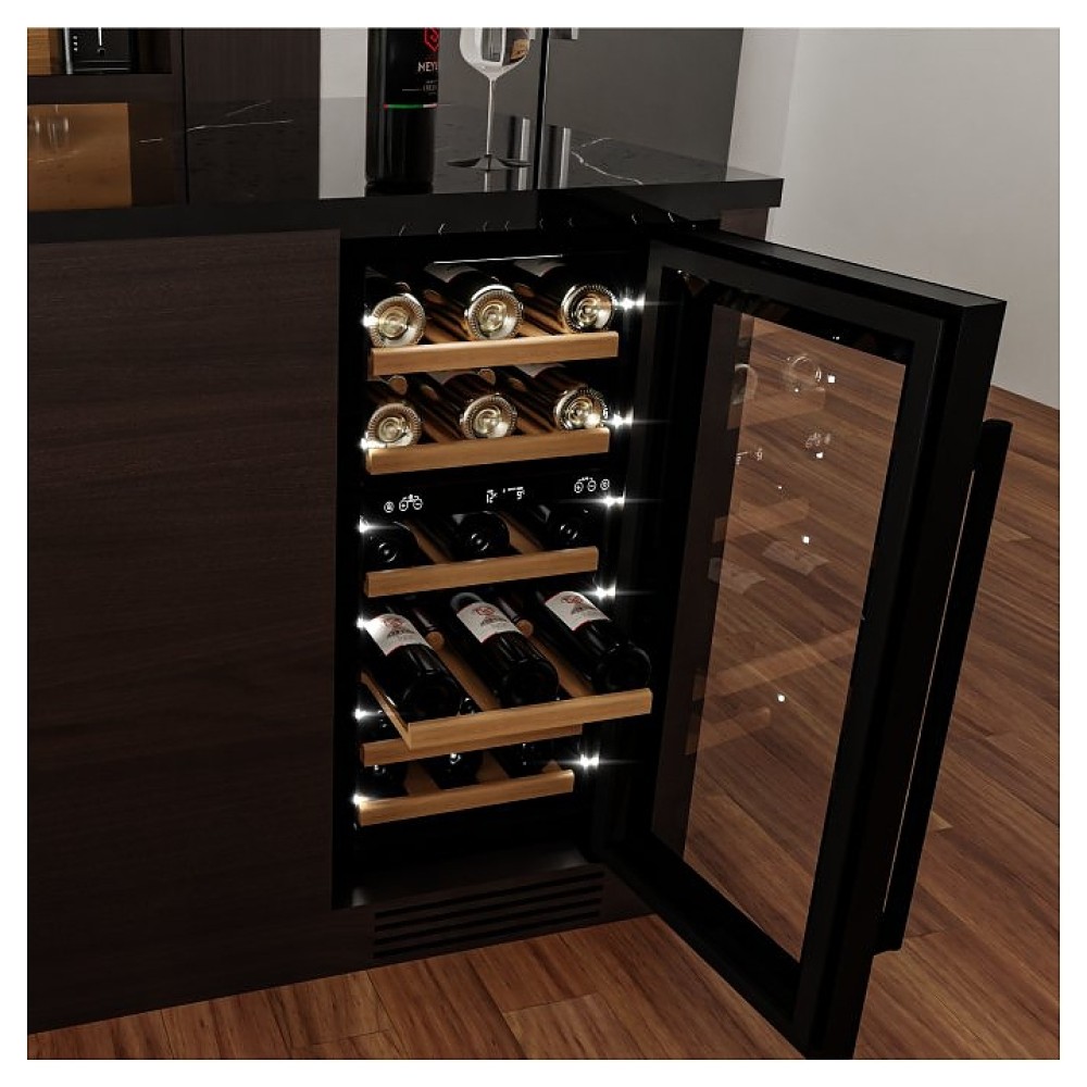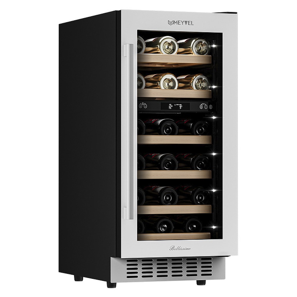 Винный шкаф MEYVEL MV28-KWT2 предназначен для демонстрации, хранения и создания оптимальных условий для сохранения всех вкусовых свойств вина в бутылках на предприятиях общественного питания, торговли, в барах, ресторанах, специализированных магазинах, частных домах или квартирах. Модель оснащена сенсорной панелью управления, 2 электронными термостатами и внутренней белой светодиодной подсветкой. Корпус выполнен из окрашенной в черный цвет стали, дверь - из тройного стекла с УФ защитой с белой рамкой, полки - из массива бука.