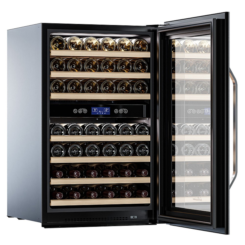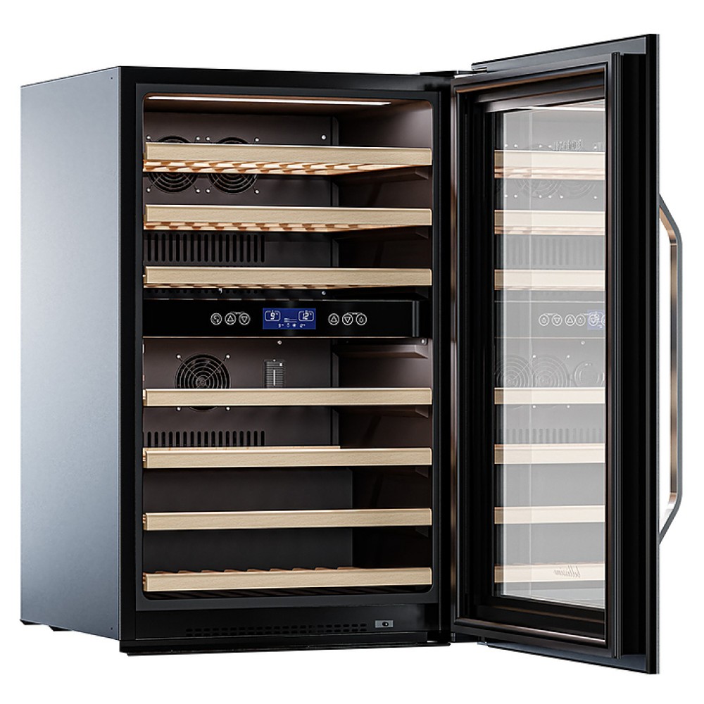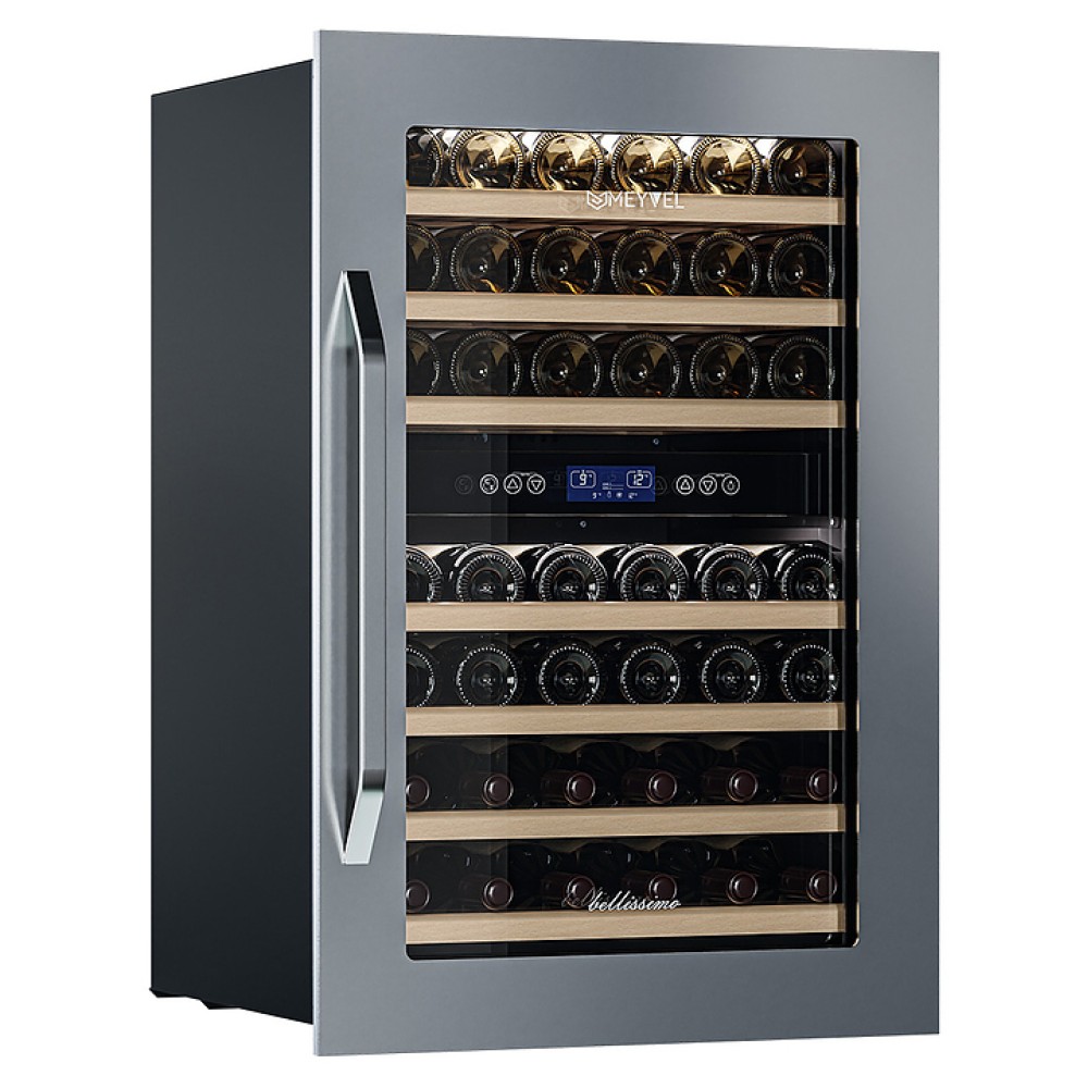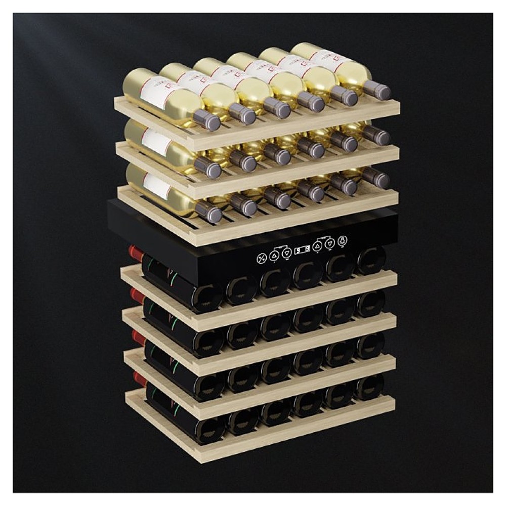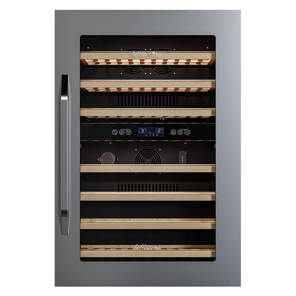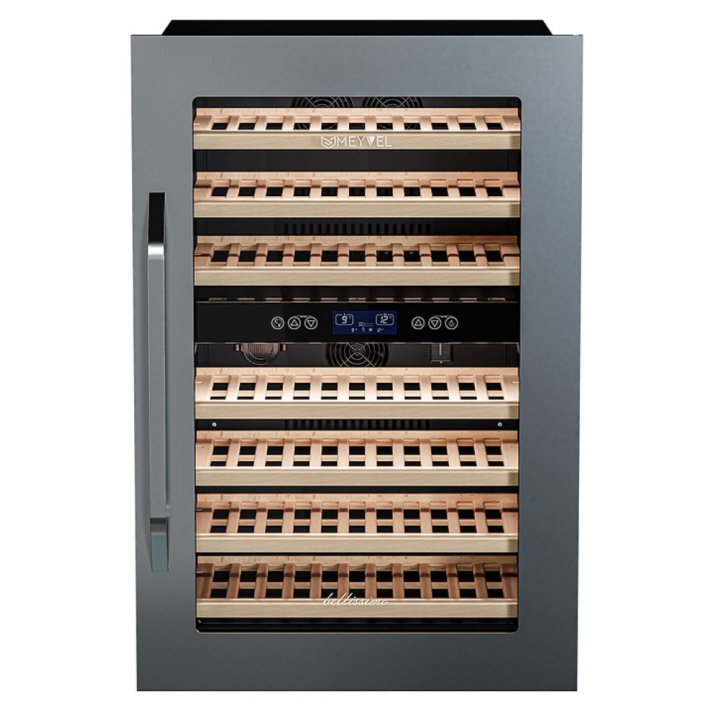 Винный шкаф MEYVEL MV42-KSB2 предназначен для демонстрации, хранения и создания оптимальных условий для сохранения всех вкусовых свойств вина в бутылках на предприятиях общественного питания, торговли, в барах, ресторанах, специализированных магазинах, частных домах или квартирах. Модель оснащена сенсорной панелью управления, 2 электронными термостатами и внутренней светодиодной подсветкой. Корпус выполнен из окрашенной в черный цвет стали, дверь - из двойного стекла с УФ защитой со стальной рамкой, полки - из массива бука.