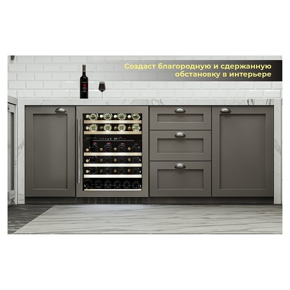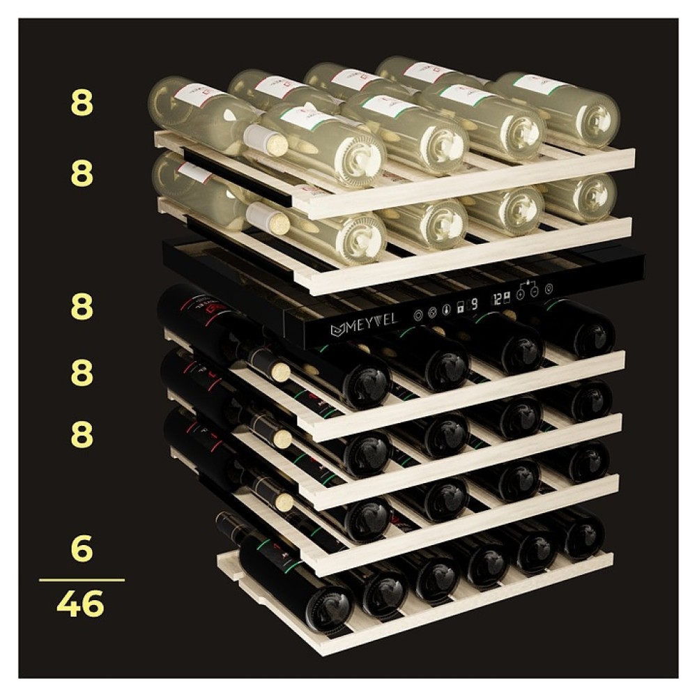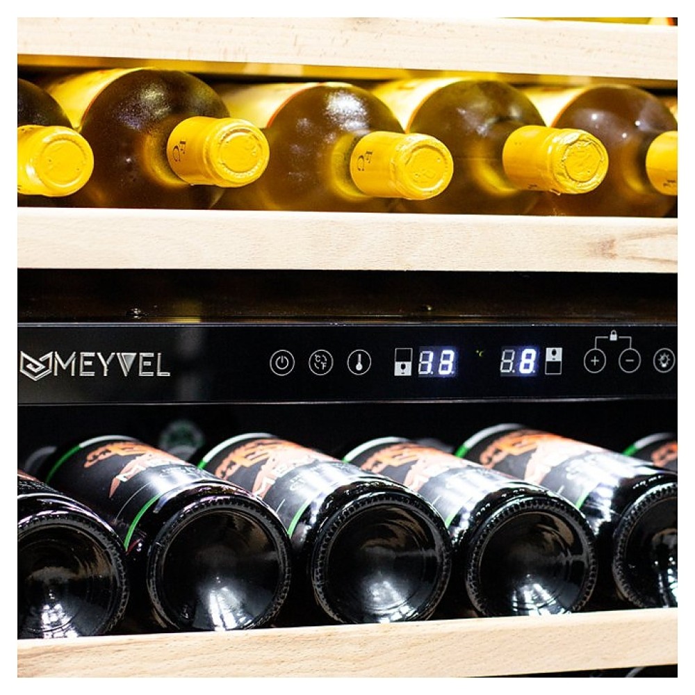 Винный шкаф MEYVEL MV46PRO-KST2 предназначен для демонстрации, хранения и создания оптимальных условий для сохранения всех вкусовых свойств вина в бутылках на предприятиях общественного питания, торговли, в барах, ресторанах, специализированных магазинах, частных домах или квартирах. Модель оснащена сенсорной панелью управления, электронным термостатом, белым демонстрационным и панорманым освещением. Корпус и ручка выполнены из стали, дверь - из стальной рамы и тройного стекла с защитой от ультрафиолетовых лучей, полки - из массива бука.