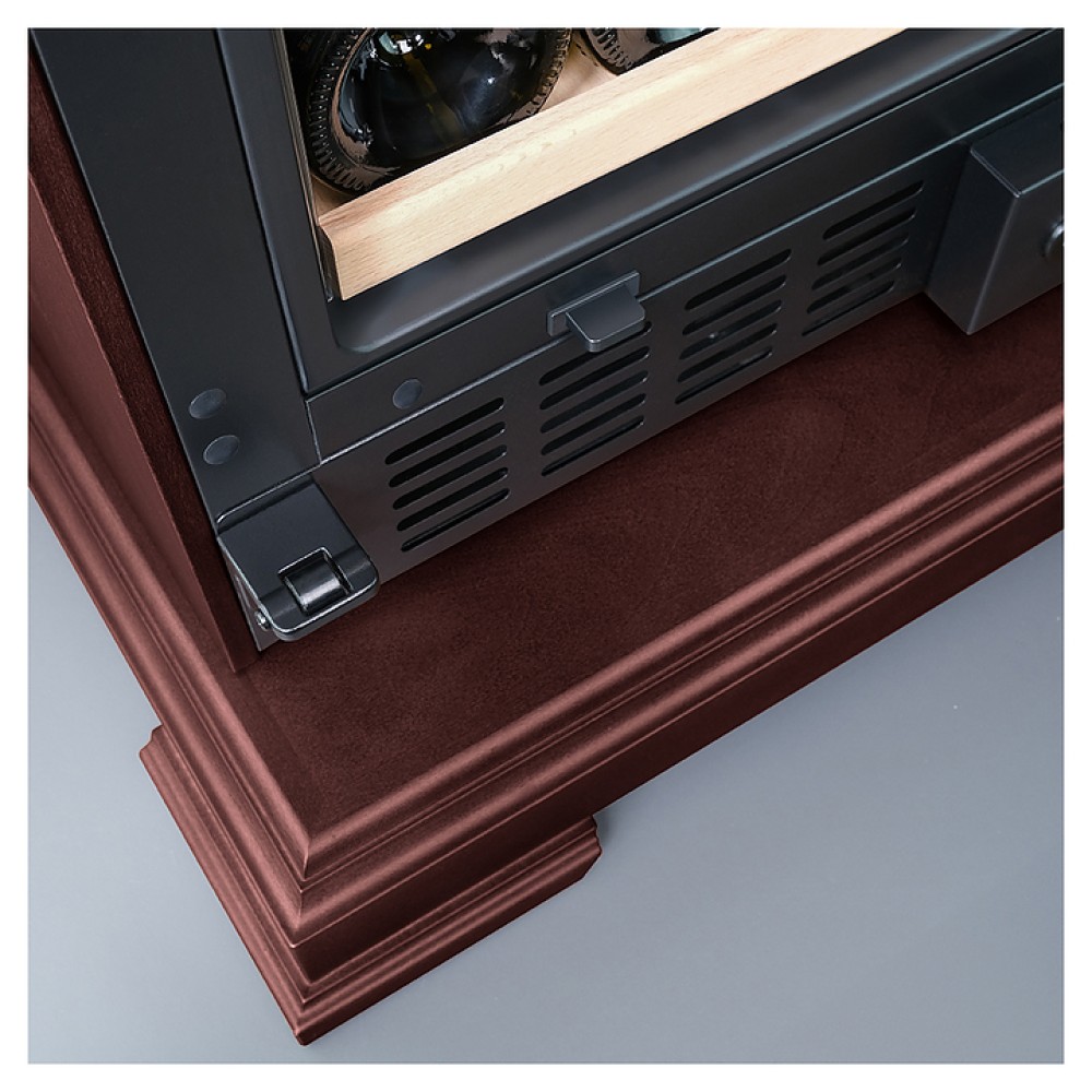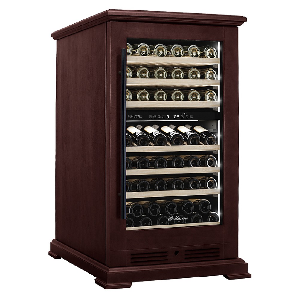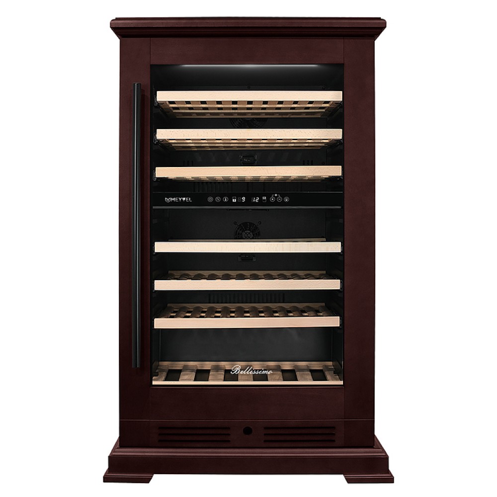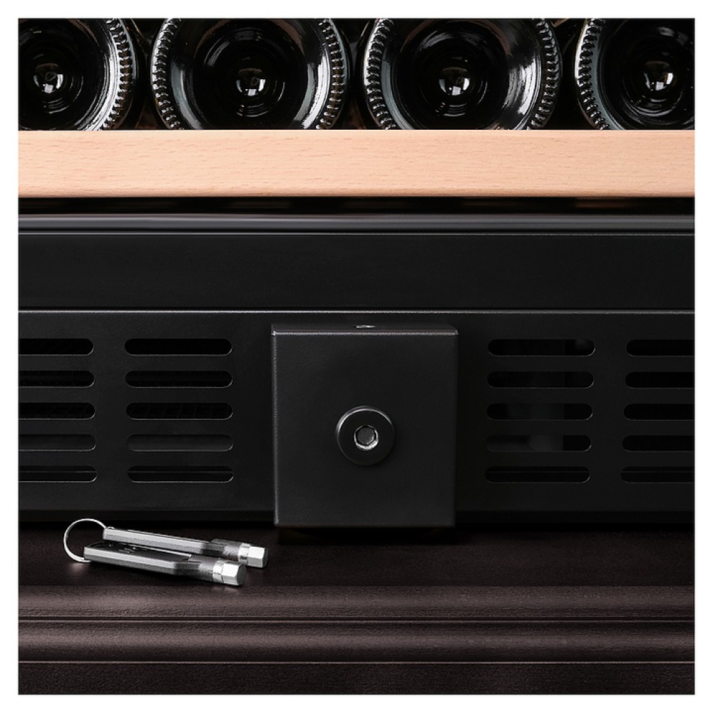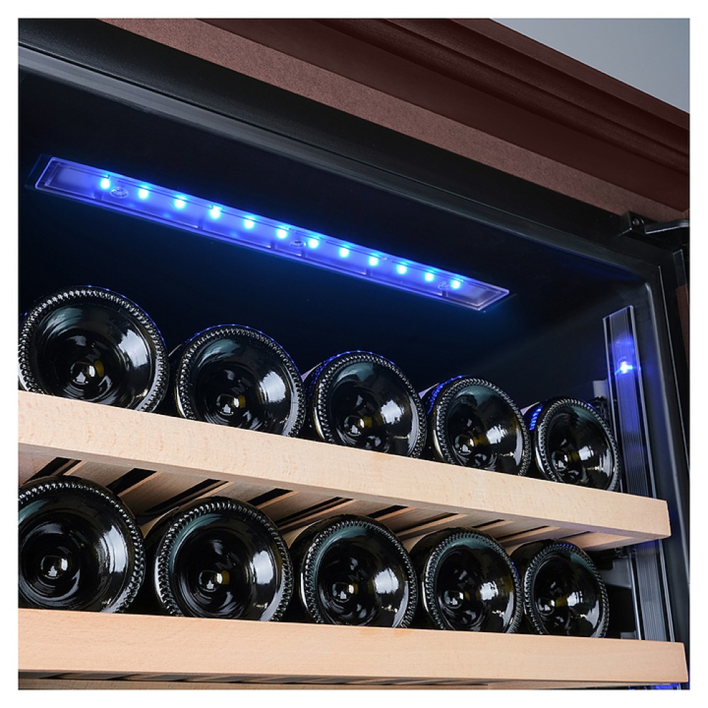 Винный шкаф MEYVEL MV77PRO-KBT2 предназначен для демонстрации, хранения и создания оптимальных условий для сохранения всех вкусовых свойств вина в бутылках на предприятиях общественного питания, торговли, в барах, ресторанах, специализированных магазинах, частных домах или квартирах. Модель оснащена интуитивно-понятной сенсорной панелью управления, электронным термостатом и внутренней светодиодной подсветкой. Корпус выполнен из стали с обшивкой из натурального шпона бука, дверь - из тройного стекла с УФ защитой, полки - из массива бука.