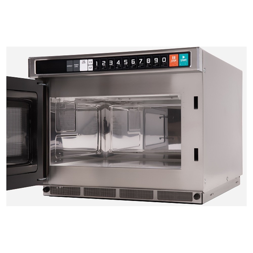 Микроволновая печь Enigma EMA17G4V-S00E00 предназначена для приготовления и разогрева блюд на предприятиях общественного питания. Оборудование просто в эксплуатации, не требует дополнительной подготовки персонала. Модель оснащена 2 магнетронами, таймером, электронным циферблатом и эргономичной дверной ручкой "Easy Grab'n Go". Корпус и камера выполнены из нержавеющей стали, смотровое окно - из закаленного стекла.