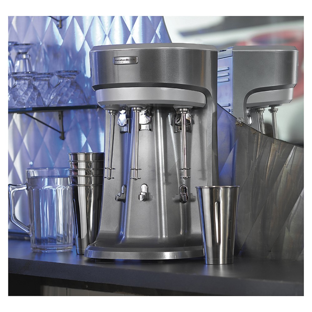Миксер для молочных коктейлей Hamilton Beach HMD400 используется в барах, кафе, ресторанах и на предприятиях фаст-фуда для приготовления шейков, муссов, коктейлей на основе молока, йогуртов или мороженого. Корпус и стакан выполнены из нержавеющей стали.