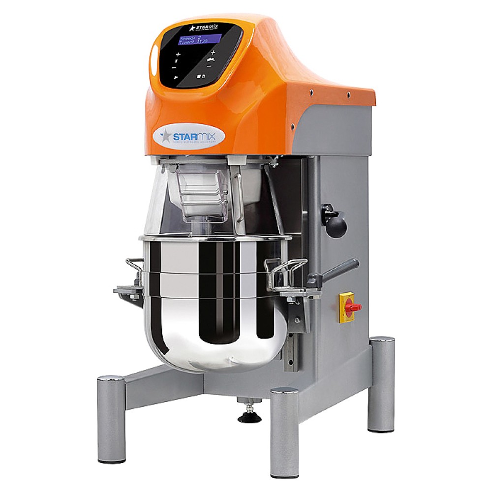 Настольный планетарный миксер Starmix PL20BNVHF предназначен для взбивания кондитерских масс: кремов, суфле, муссов, а также бисквитного, дрожжевого, песочного, блинного, заварного теста на предприятиях общественного питания и торговли, в пекарнях и кондитерских. Модель оснащена сенсорной панелью управления с дисплеем. Корпус выполнен из окрашенного металла, защитный кожух - из пластика.