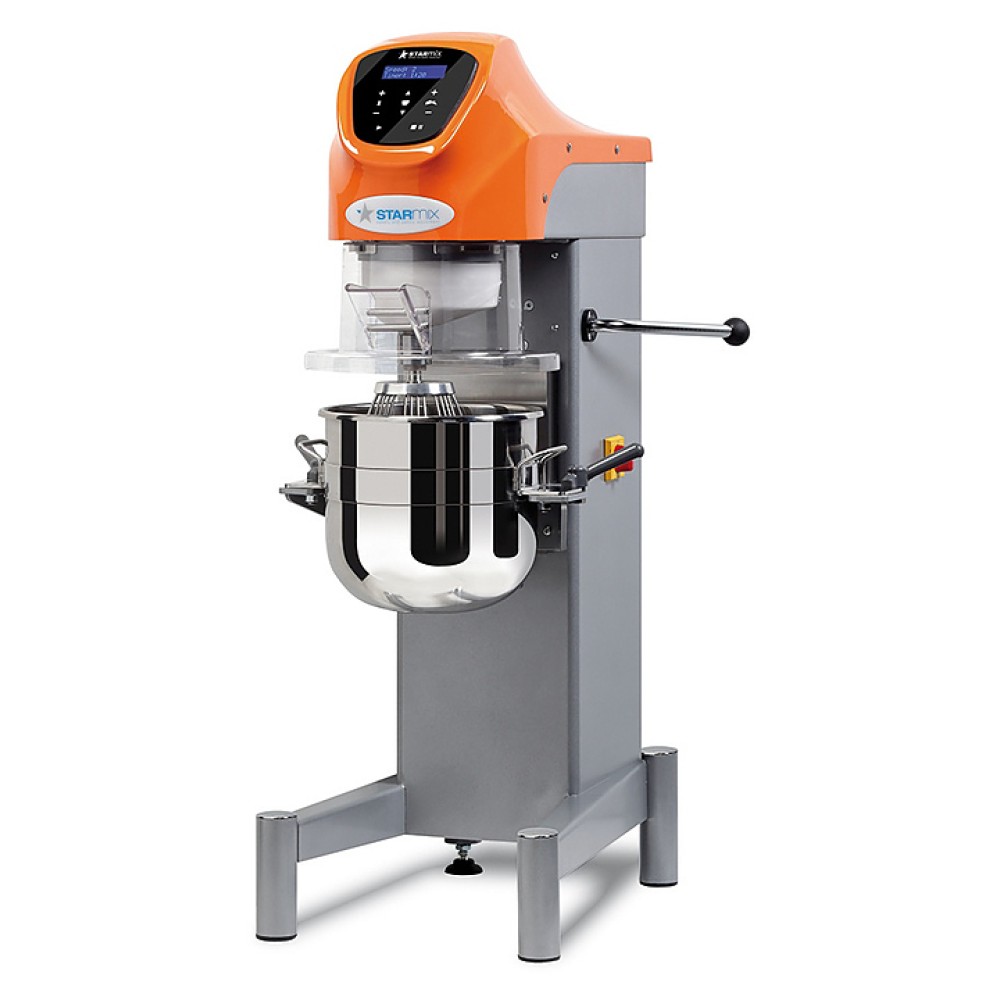 Напольный планетарный миксер Starmix PL20CNVHF предназначен для взбивания кондитерских масс: кремов, суфле, муссов, а также бисквитного, дрожжевого, песочного, блинного, заварного теста на предприятиях общественного питания и торговли, в пекарнях и кондитерских. Модель оснащена сенсорной панелью управления с дисплеем. Корпус выполнен из окрашенного металла, защитный кожух - из пластика.