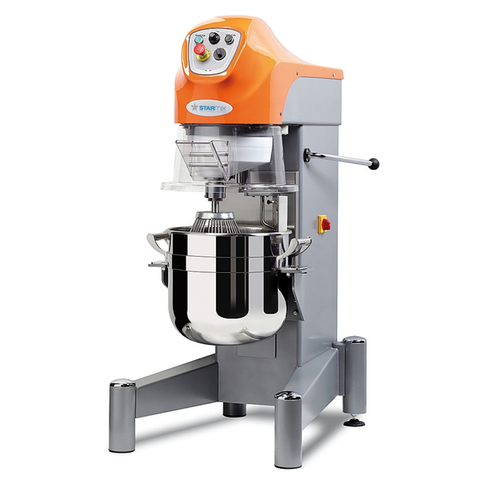 Напольный планетарный миксер Starmix PL30NVF предназначен для взбивания кондитерских масс: кремов, суфле, муссов, а также бисквитного, дрожжевого, песочного, блинного, заварного теста на предприятиях общественного питания и торговли, в пекарнях и кондитерских. Модель оснащена электромеханической панелью управления. Корпус выполнен из окрашенного металла, защитный кожух - из пластика.