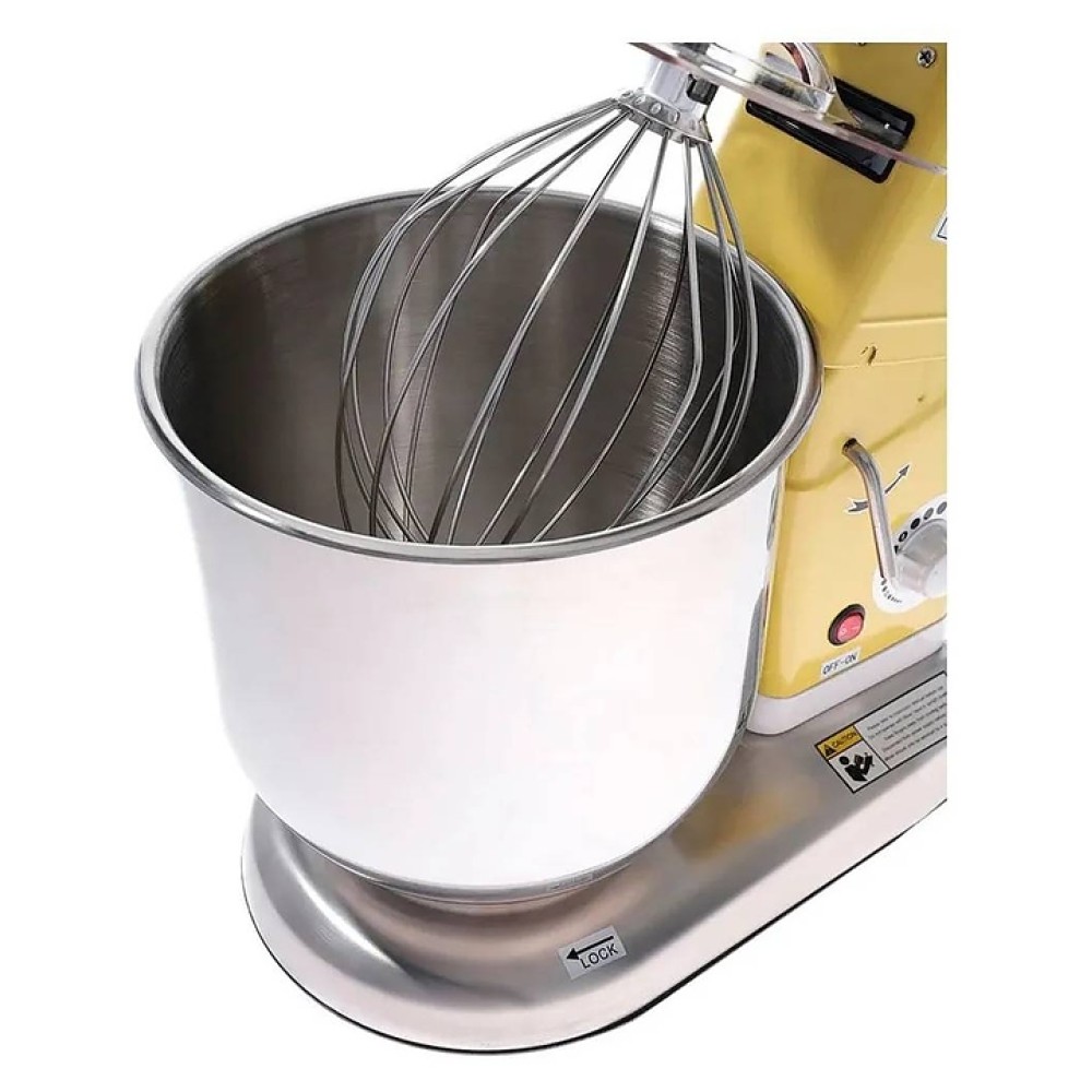 Планетарный миксер VIATTO VA-SMB10Y предназначен для замеса различных видов теста, а также для взбивания кремов, муссов и приготовления пюре, соусов и коктейлей на предприятиях общественного питания и торговли. Модель оснащена съемной дежой. Корпус изготовлен из окрашенного металла, дежа - из нержавеющей стали, защитная крышка - из пластика.