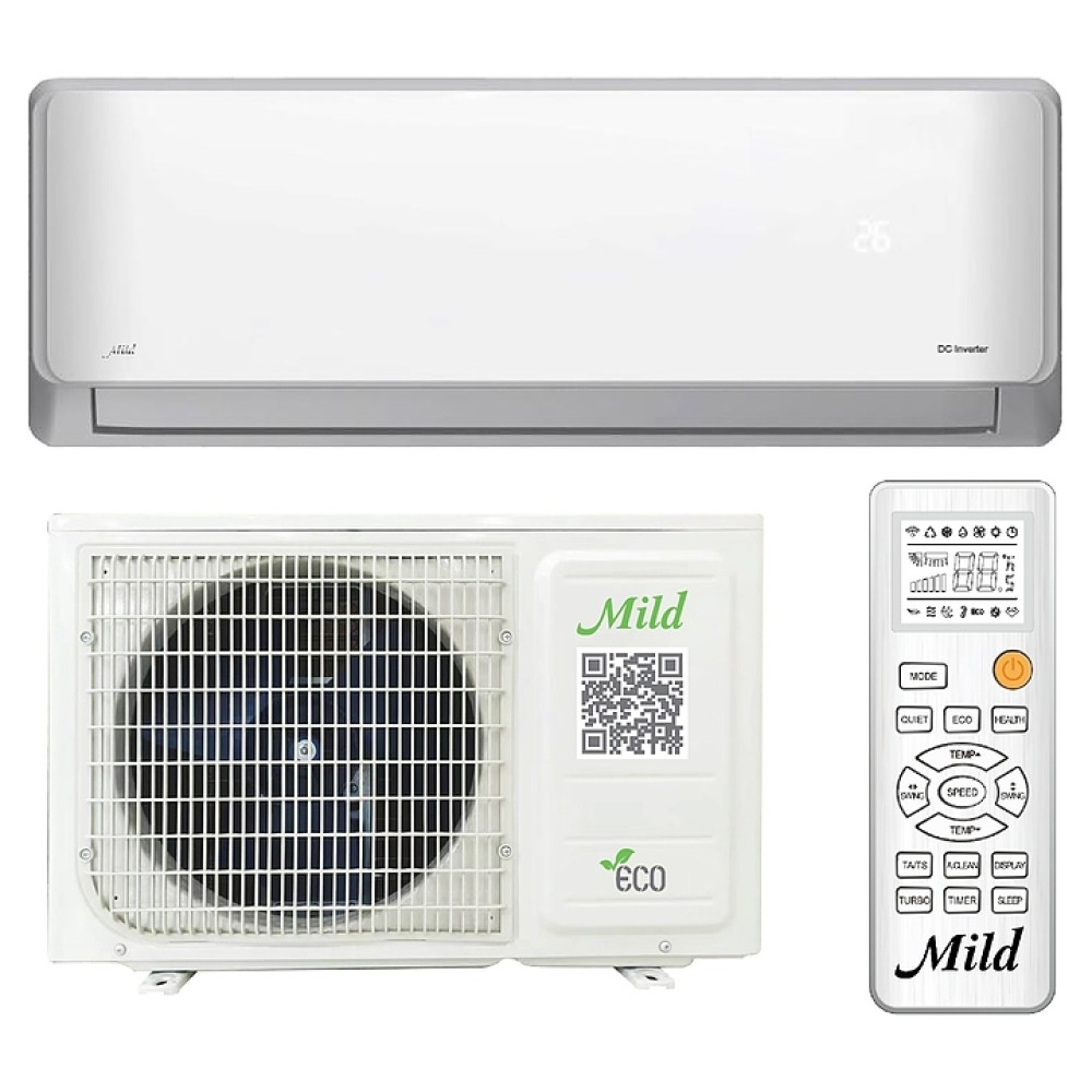 Настенная сплит-система Mild MLI-DC18MB / MLO-DC18MB используется для создания максимально кофмортных условий микроклимата в жилых, офисных и коммерческих помещениях. Модель состоит из внутреннего блока MLI-DC18MB и наружного блока MLO-DC18MB. Наружный блок оснащен изогнутым трубчато-пластинчатым теплообменником, 3-лопастным вентилятором, защитными решеткой и крышкой для сервисных вентилей, внутренний блок – диаметральным вентилятором, воздухозаборной решеткой, откидной лицевой панелью, подвижными горизонтальной заслонкой и вертикальными жалюзи, электронным блоком управления и светодиодным дисплеем скрытого типа с проецируемой на фронтальную панель индикацией, пульт – информативным жидкокристаллическим дисплеем и кнопочной клавиатурой. Облицовка внутреннего блока выполнена из ударопрочного АБС-пластика с поверхностью белого цвета, корпус пульта – из ударопрочного белого пластика, крыльчатка вентиляторов – из АС-пластика, корпус наружного блока – из стали с антикоррозийным покрытием белого цвета.