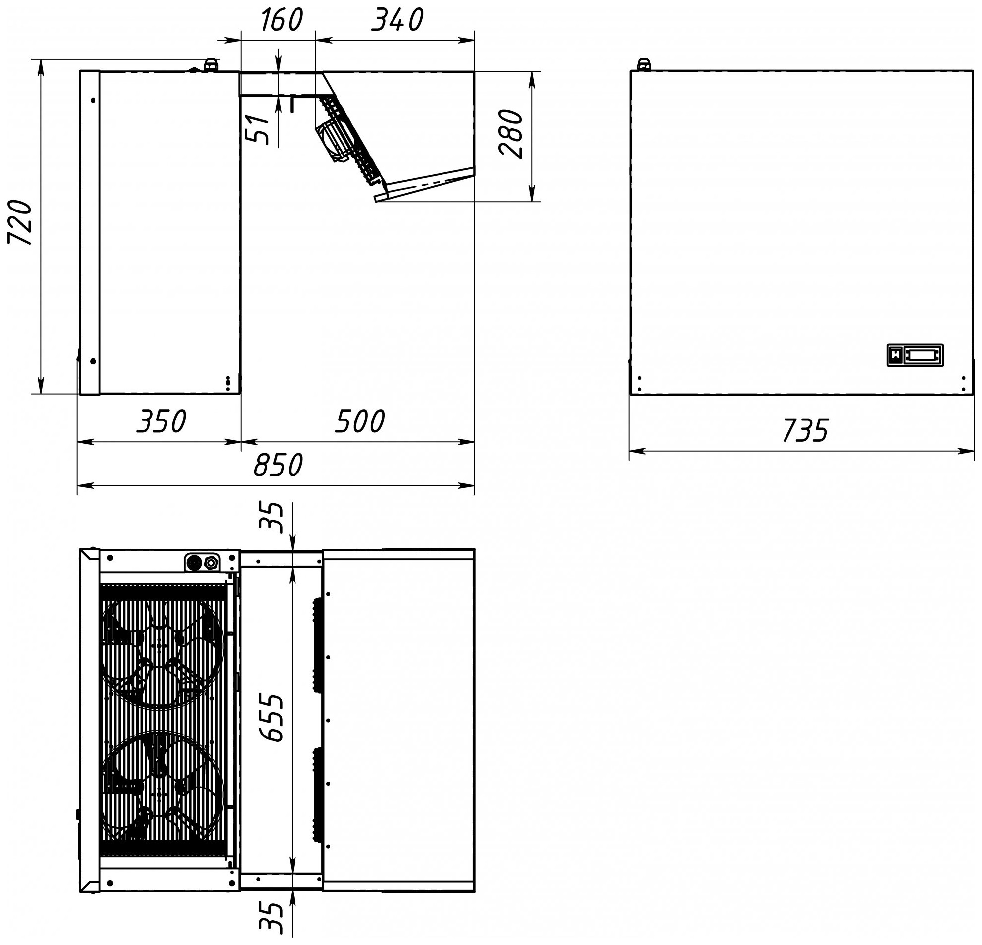 | Высота720 мм | Глубина850 мм | Ширина735 мм |
