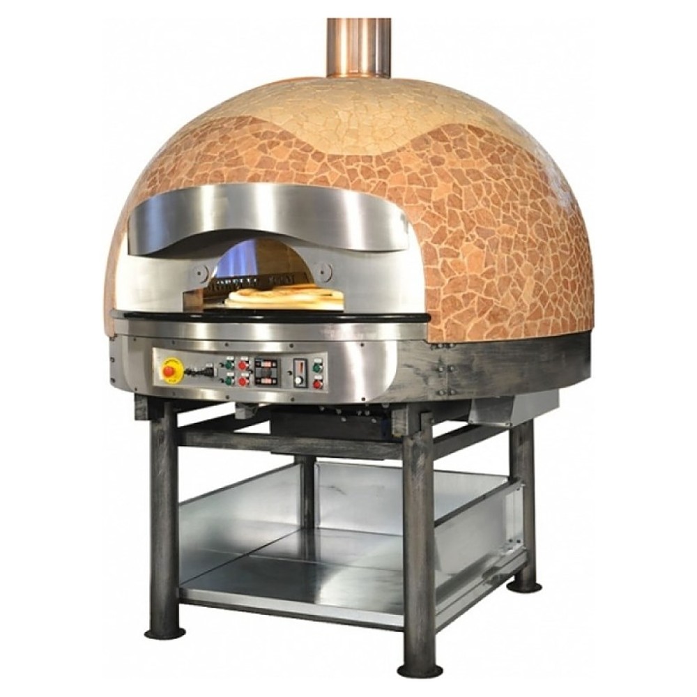 Дровяная печь Morello Forni MIXE130 СUPOLA MOSAIC с вспомогательной электрической системой обогрева пода используется на предприятиях общественного питания и торговли, в пекарнях и кондитерских для выпечки пиццы, горячих сэндвичей и хлебобулочных изделий. Модель оснащена ящиком для сбора золы и остатков продуктов, полкой для дров со съёмными панелями и ручной заслонкой.