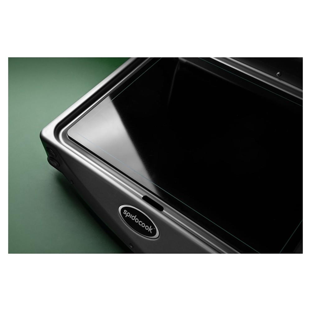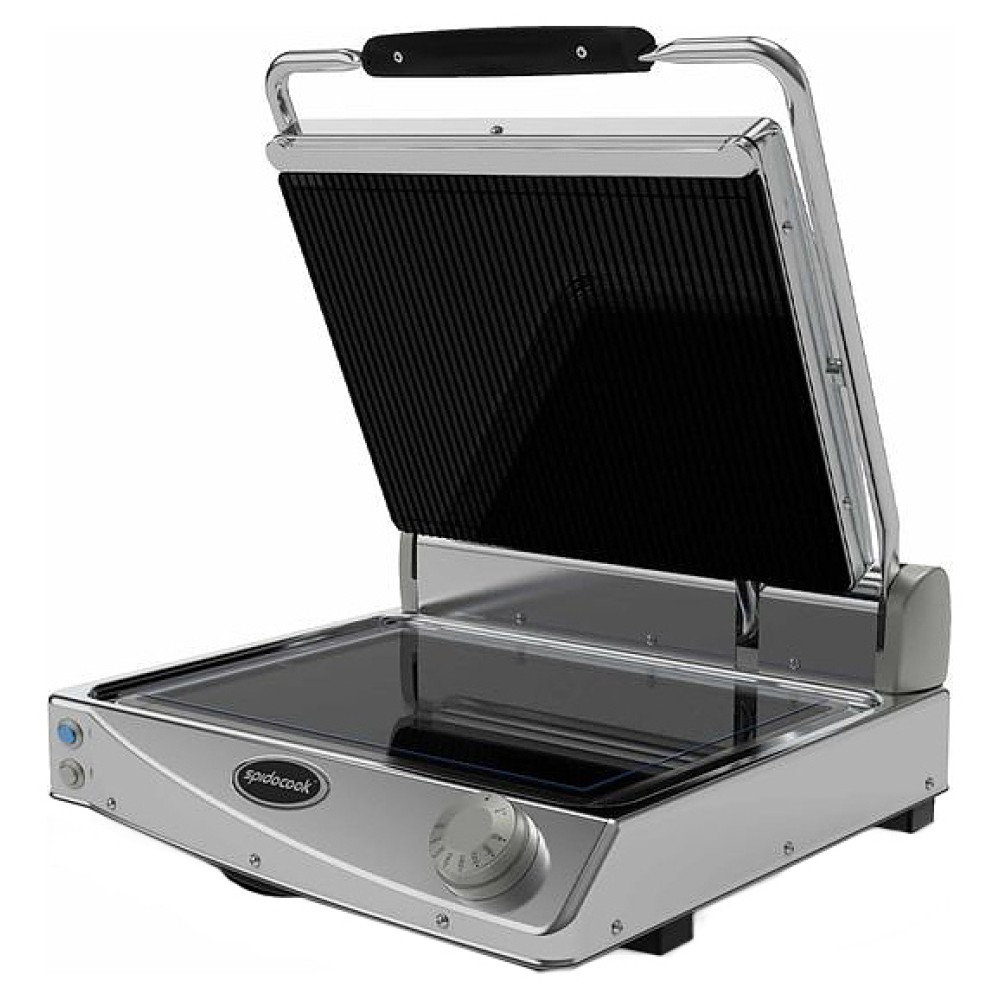 Контактный гриль Spidocook Spidoglass SP015R предназначен для жарки, быстрого приготовления и разогрева блюд из мяса, рыбы, птицы и полуфабрикатов в отелях, аэропортах, фуд-траках и на других предприятиях общественного питания и торговли. Модель оснащена электромеханической панелью управления с кнопкой включения / выключения и светодиодным индикатором, съемным поддоном для сбора жира, эргономичной ручкой и 4 нескользящими ножками. Корпус выполнен из нержавеющей стали. Рабочая поверхность имеет антипригарное покрытие, не впитывает запахи и отличается высокой ударопрочностью.