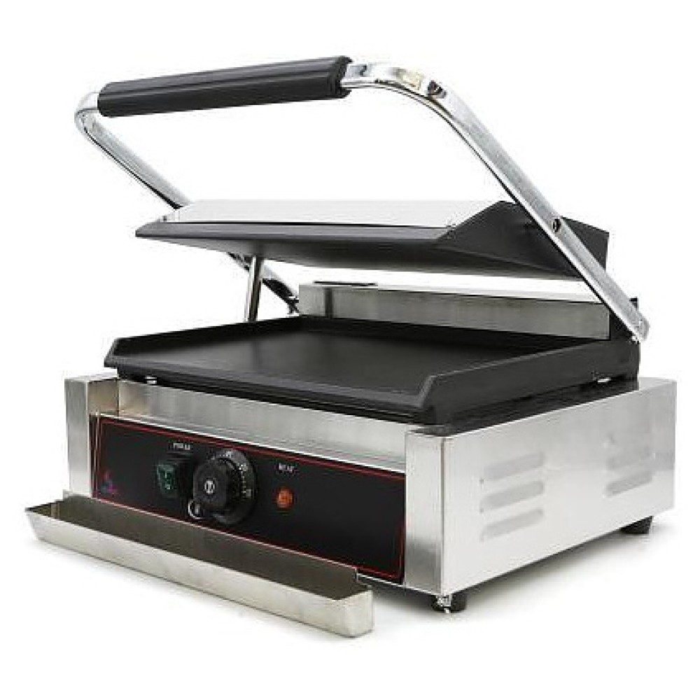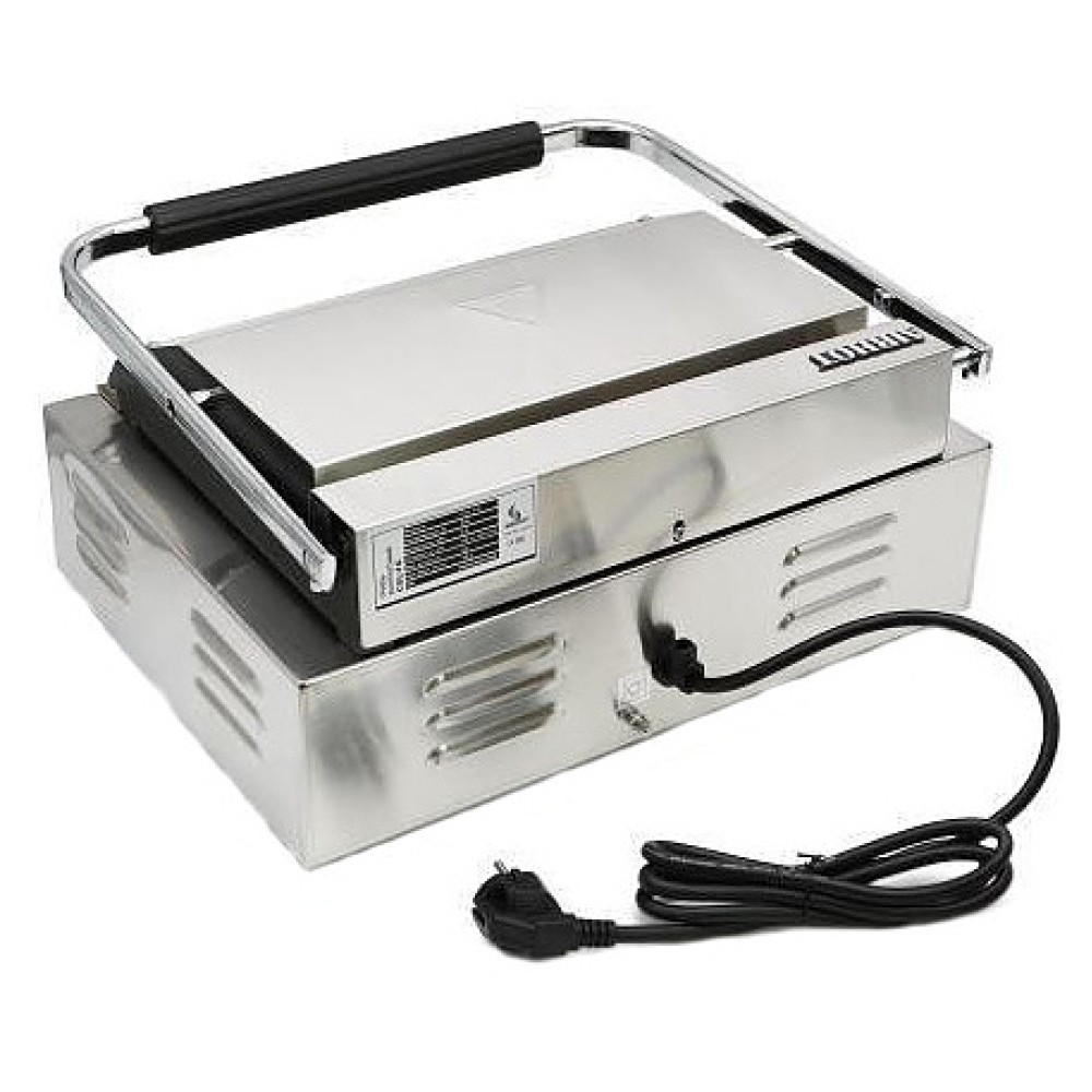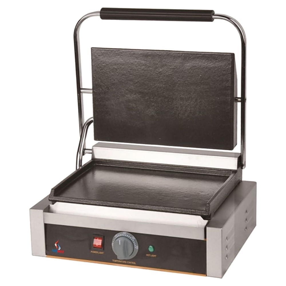 Прижимной гриль Airhot CGL-FF предназначен для жарки мяса, птицы, рыбы, овощей, а также для приготовления стейков, гамбургеров и горячих сэндвичей на предприятиях общественного питания и торговли. Высокая скорость приготовления достигается благодаря встроенным в обе части аппарата тепловым элементам, которые плотно прилегают к продукту. Модель оснащена терморегулятором и съёмным поддоном для сбора жира и крошек. Корпус выполнен из нержавеющей стали, жарочная поверхность - из чугуна с антипригарным покрытием.
