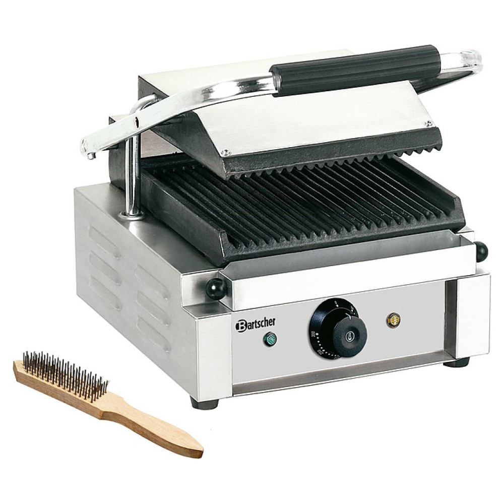Прижимной гриль Bartscher A150670 предназначен для жарки мяса, птицы, рыбы, овощей, а также для приготовления стейков, гамбургеров и горячих сэндвичей на предприятиях общественного питания и торговли. Корпус выполнен из нержавеющей стали.