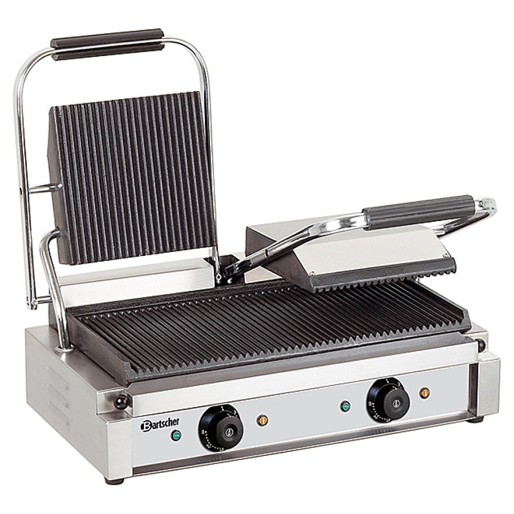 Прижимной гриль Bartscher A150671 предназначен для жарки мяса, птицы, рыбы, овощей, а также для приготовления стейков, гамбургеров и горячих сэндвичей на предприятиях общественного питания и торговли. Корпус выполнен из нержавеющей стали.