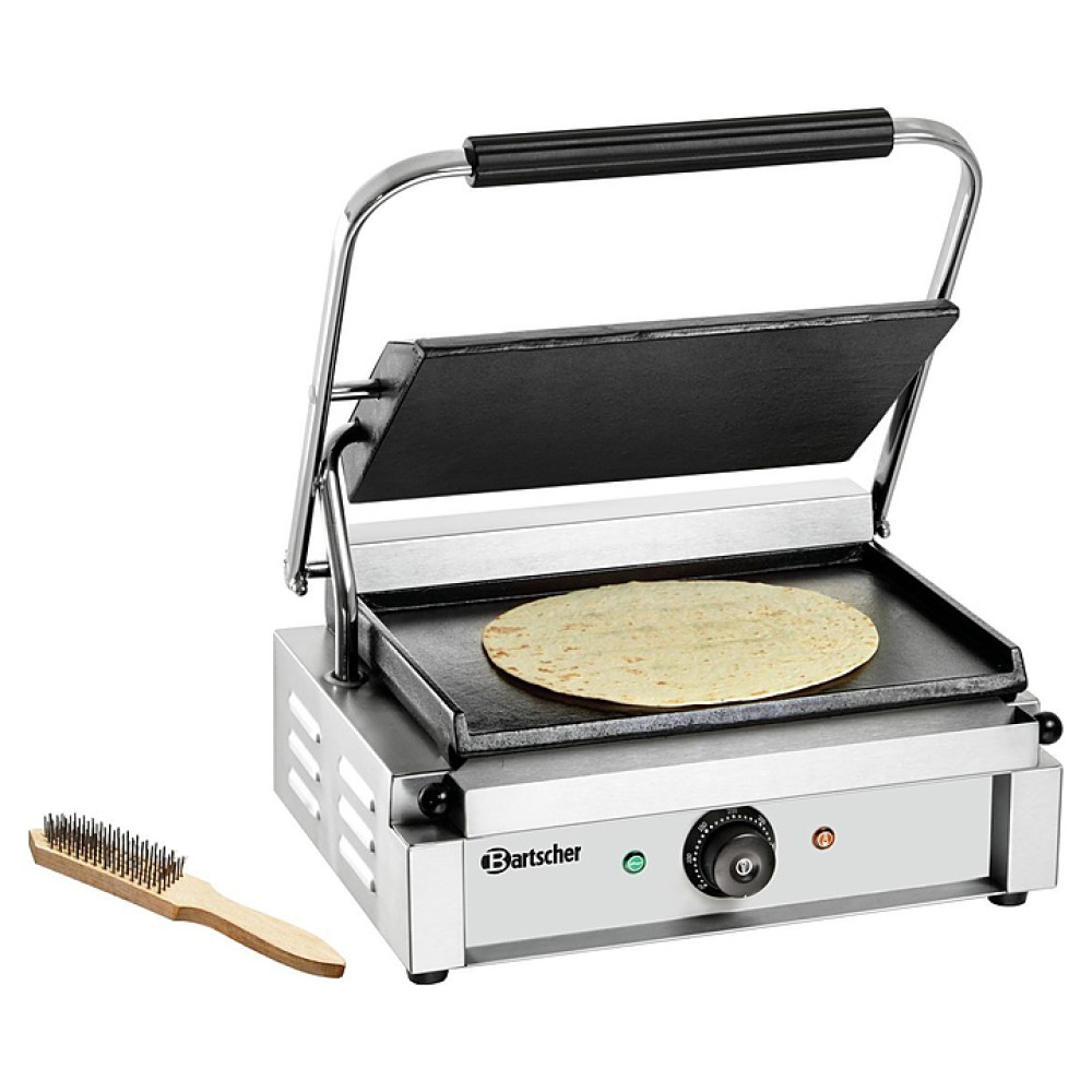 Прижимной гриль Bartscher A150679 предназначен для жарки мяса, птицы, рыбы, овощей, а также для приготовления стейков, гамбургеров и горячих сэндвичей на предприятиях общественного питания и торговли. Корпус выполнен из нержавеющей стали.