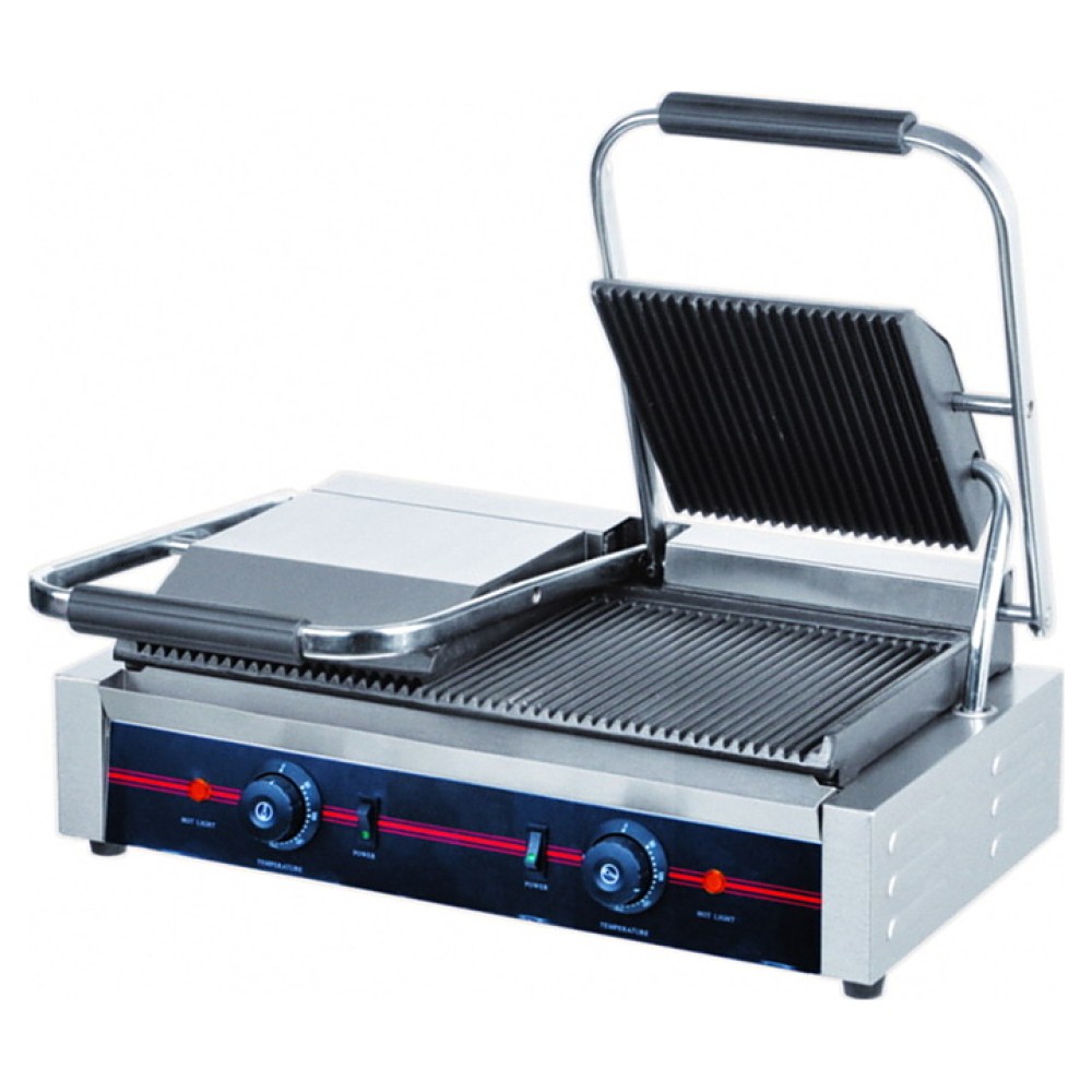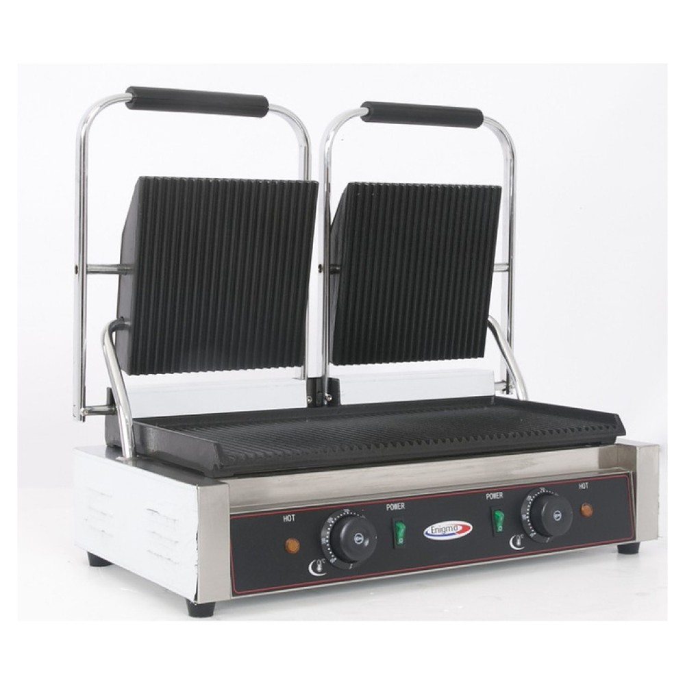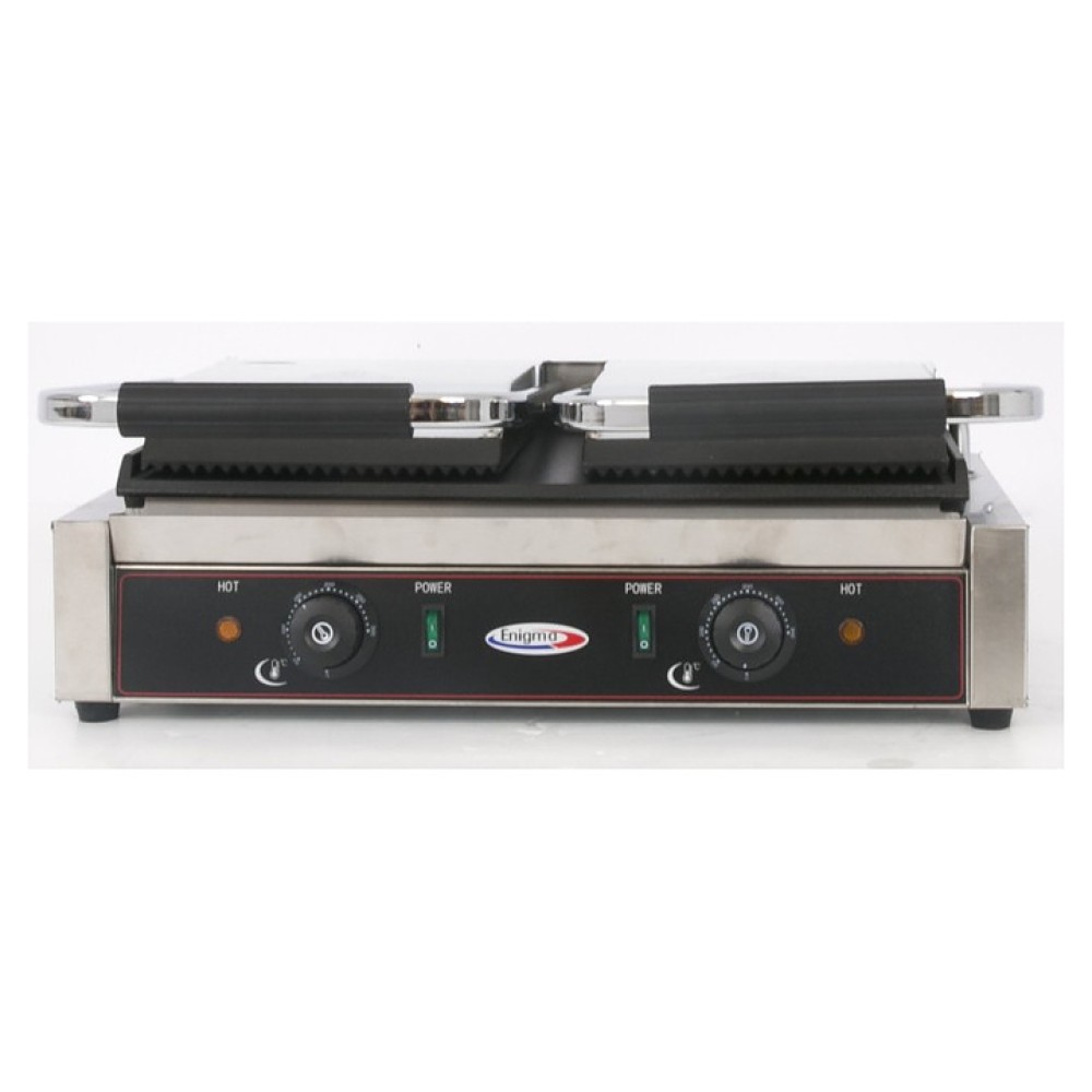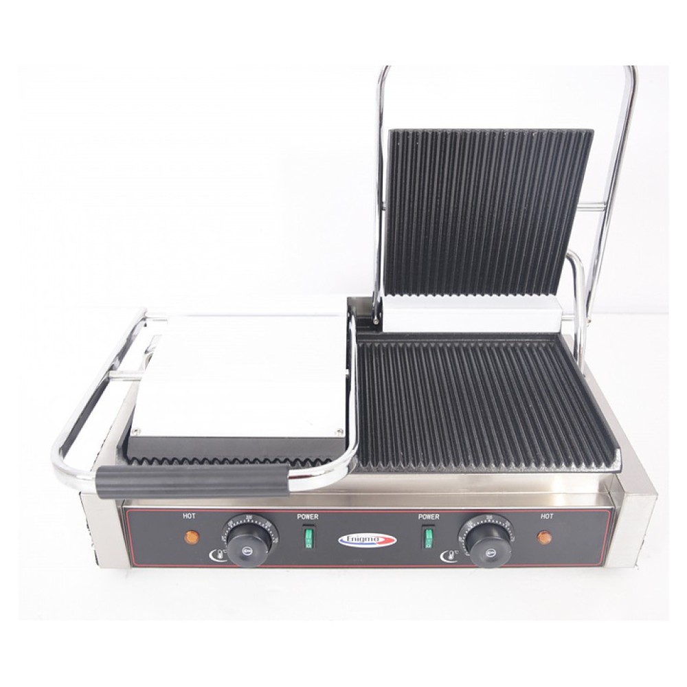Прижимной гриль Enigma IEG-813 предназначен для жарки, быстрого приготовления и разогрева блюд из мяса, рыбы, птицы и полуфабрикатов на предприятиях общественного питания и торговли. Модель оснащена электромеханическим управлением, двумя терморегуляторами и индикатором нагрева. Корпус выполнен из нержавеющей стали 201.