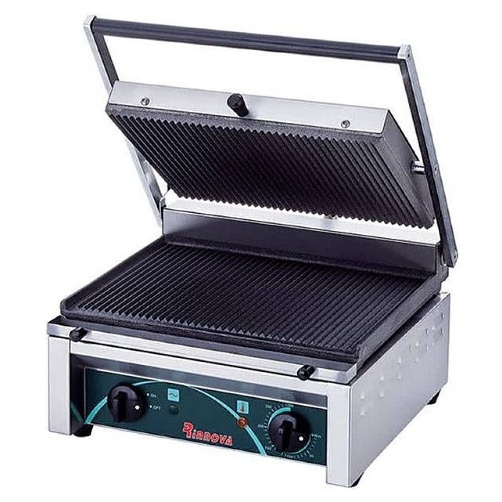 Прижимной гриль Kalitegaz RN 101-A предназначен для жарки мяса, птицы, рыбы, овощей, а также для приготовления стейков, гамбургеров и горячих сэндвичей на предприятиях общественного питания и торговли. Рифленая поверхность создает аппетитную хрустящую корочку. Модель оснащена выдвижным поддоном для сбора соков и лишнего жира. Корпус выполнен из нержавеющей стали, рамка - из квадратной трубы.