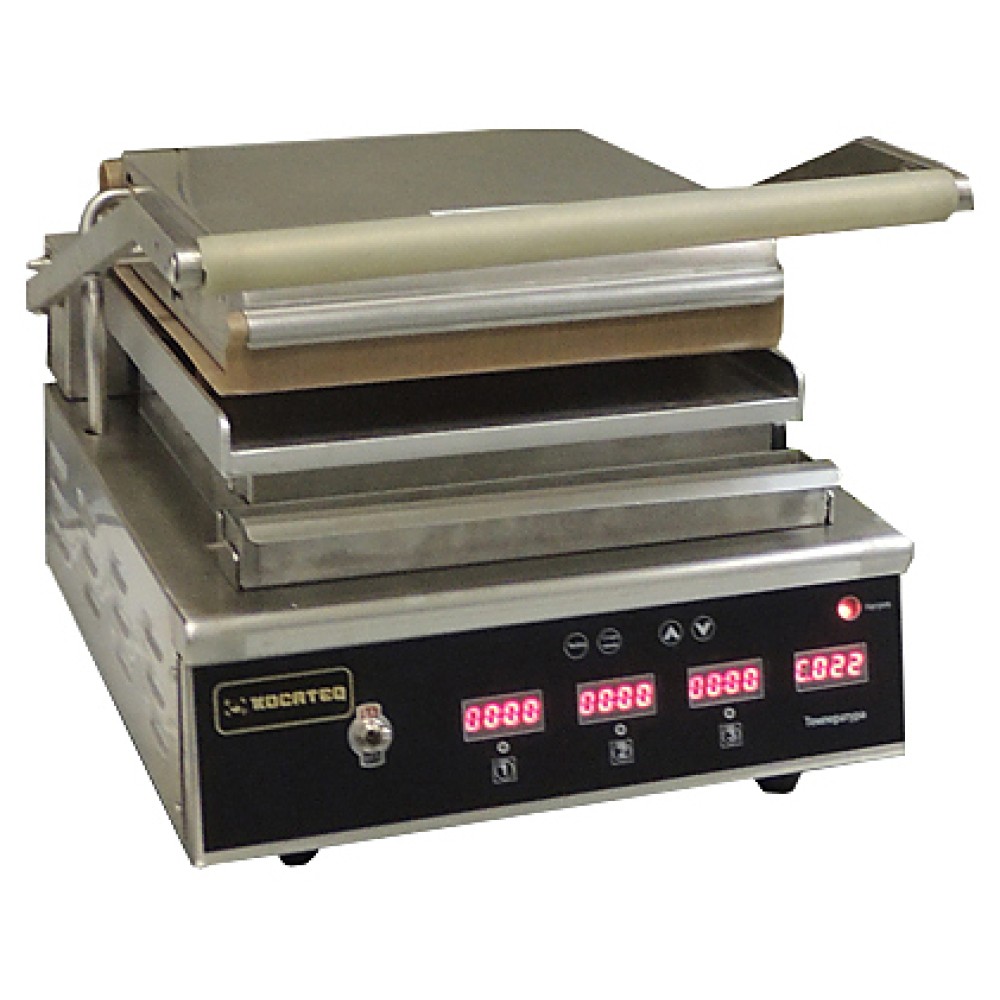 Прижимной гриль Kocateq GH12 предназначен для жарки мяса, птицы, рыбы и овощей, приготовления стейков, гамбургеров и горячих сэндвичей на предприятиях общественного питания и торговли. Модель оснащена цифровой панелью управления, цифровым термостатом для контроля и регулировки температуры таймером обратного отсчета до 99 минут. Корпус выполнен из нержавеющей стали AISI 304 толщиной 1,2 мм, ножки - из пластика.