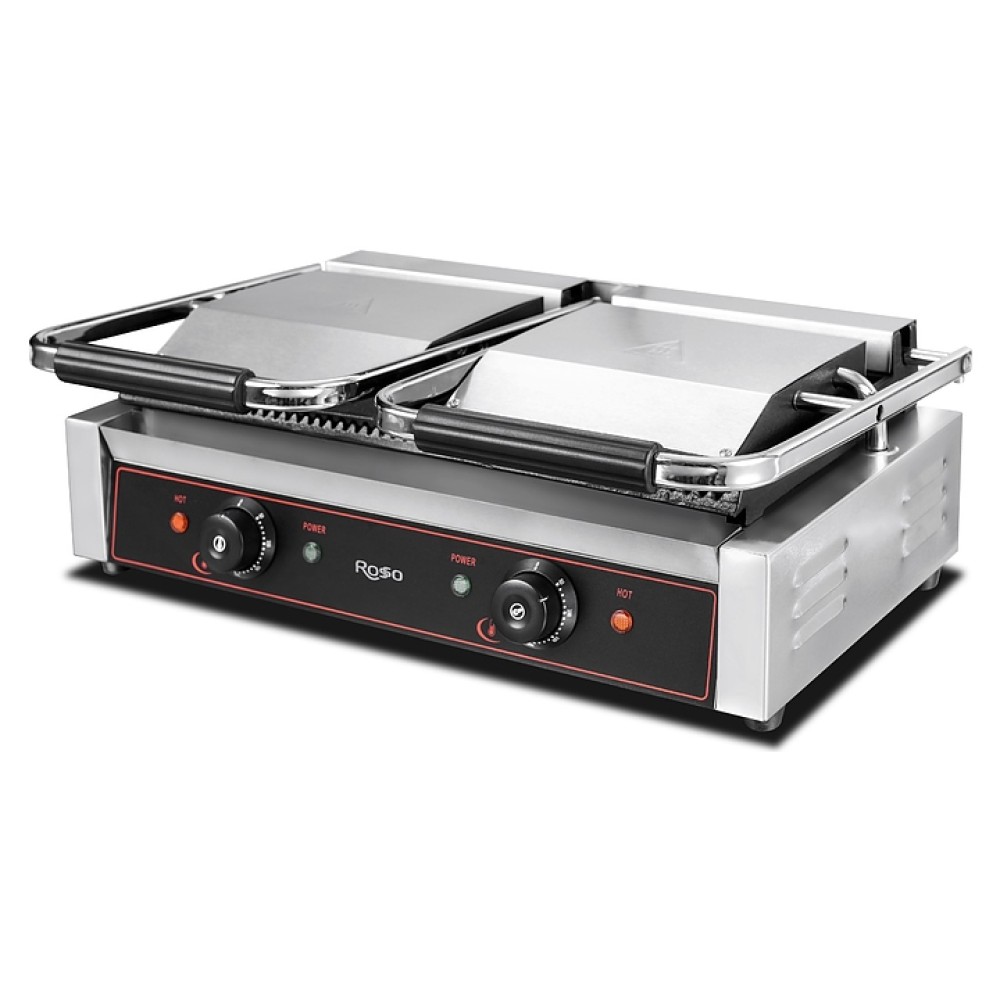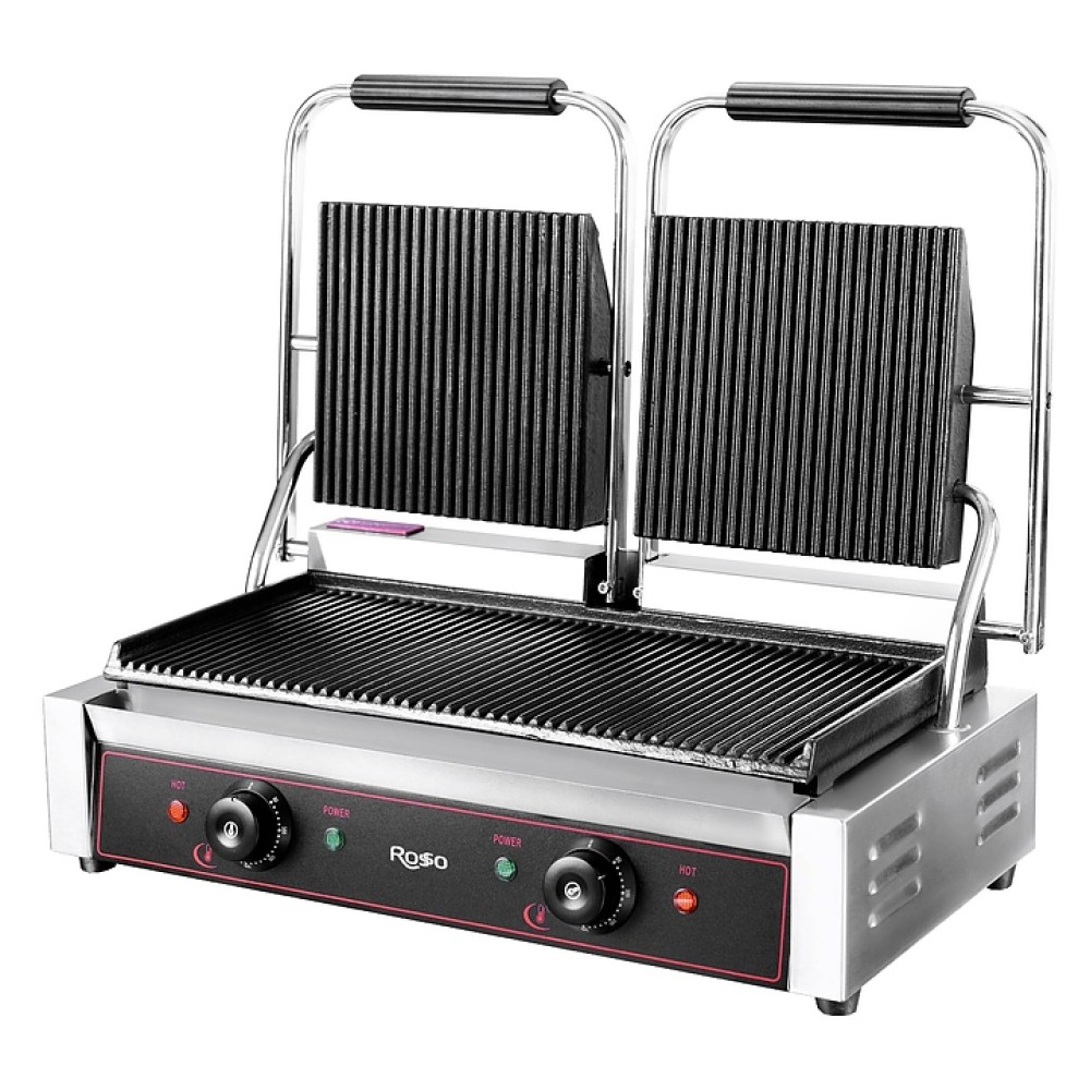 Прижимной гриль Rosso HEG-813 предназначен для жарки мяса, рыбы, птицы, овощей, бутербродов и сэндвичей на предприятиях общественного питания и торговли. Модель оснащена терморегуляторами и индикаторами нагрева и питания. Корпус выполнен из нержавеющей стали, рабочая поверхность из чугуна.