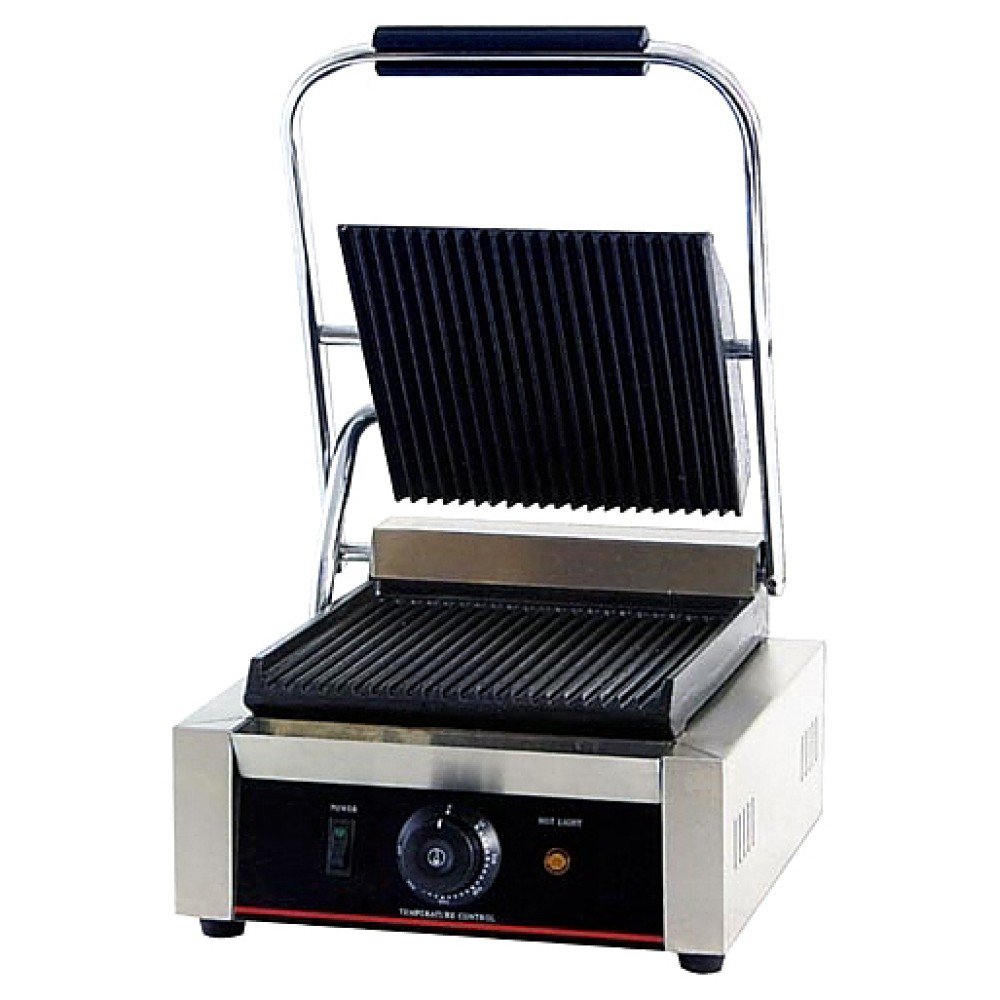 Прижимной гриль VIATTO GHH-811 предназначен для жарки мяса, птицы, рыбы, овощей, а также для приготовления бутербродов, сэндвичей. Высокая скорость приготовления достигается благодаря встроенным в обе части аппарата тепловым элементам, которые плотно прилегают к продукту. Жарочная поверхность выполнена из чугуна, покрытого эмалью. Рабочие поверхности имеют антипригарное покрытие.