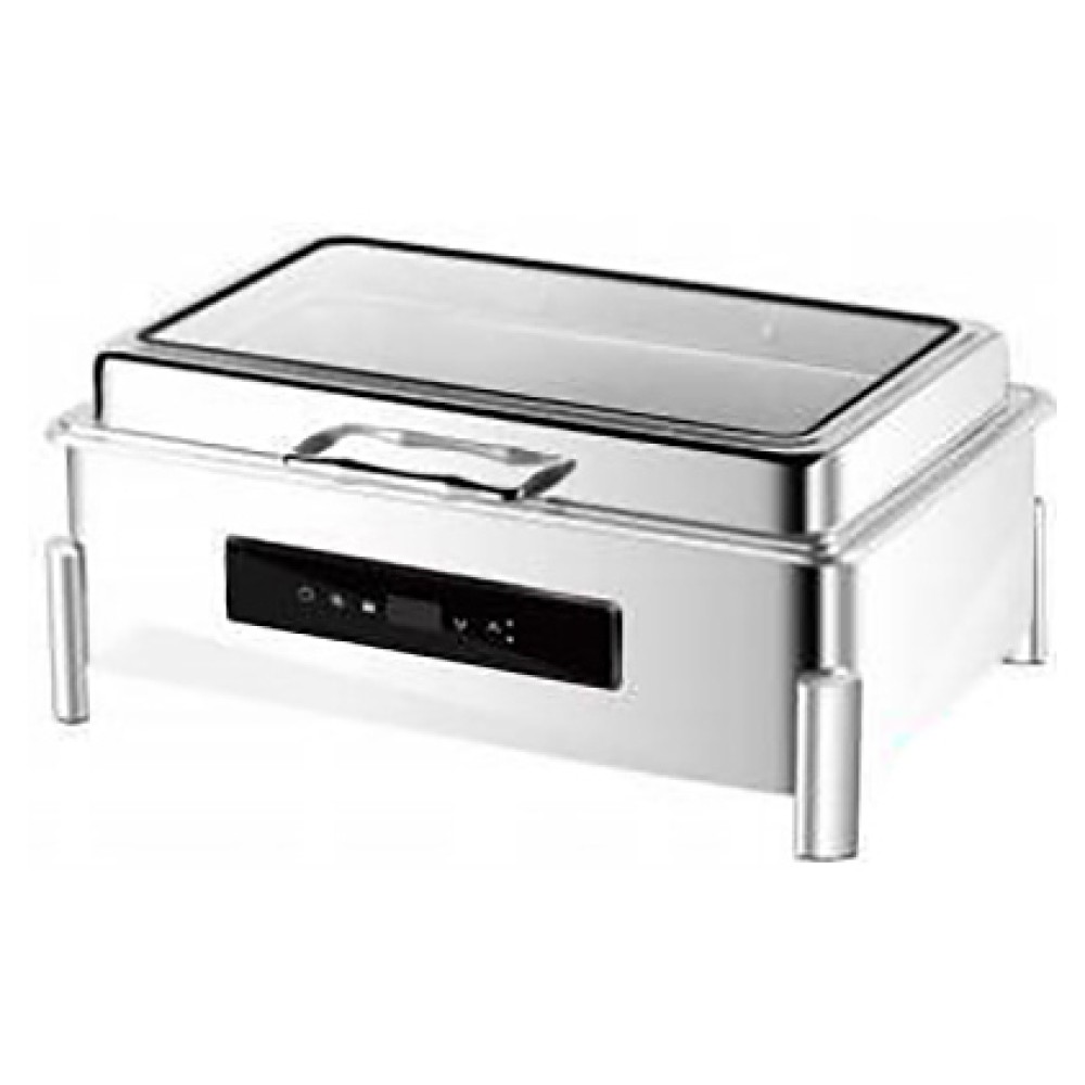 Чафин-диш MVQ Standart Plus используется для выкладки готовых блюд, гарниров и закусок при организации линий самообслуживания в кафе, столовых и ресторанах, шведских столов в отелях, банкетов, фуршетов и кейтеринга. Модель оснащена прямоугольной откидной крышкой с ручкой, подключением к электричеству и дисплеем для контроля температуры подогрева. Изделие выполнено из высококачественной нержавеющей стали, которая легко моется и не впитывает запахи.