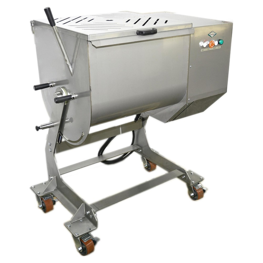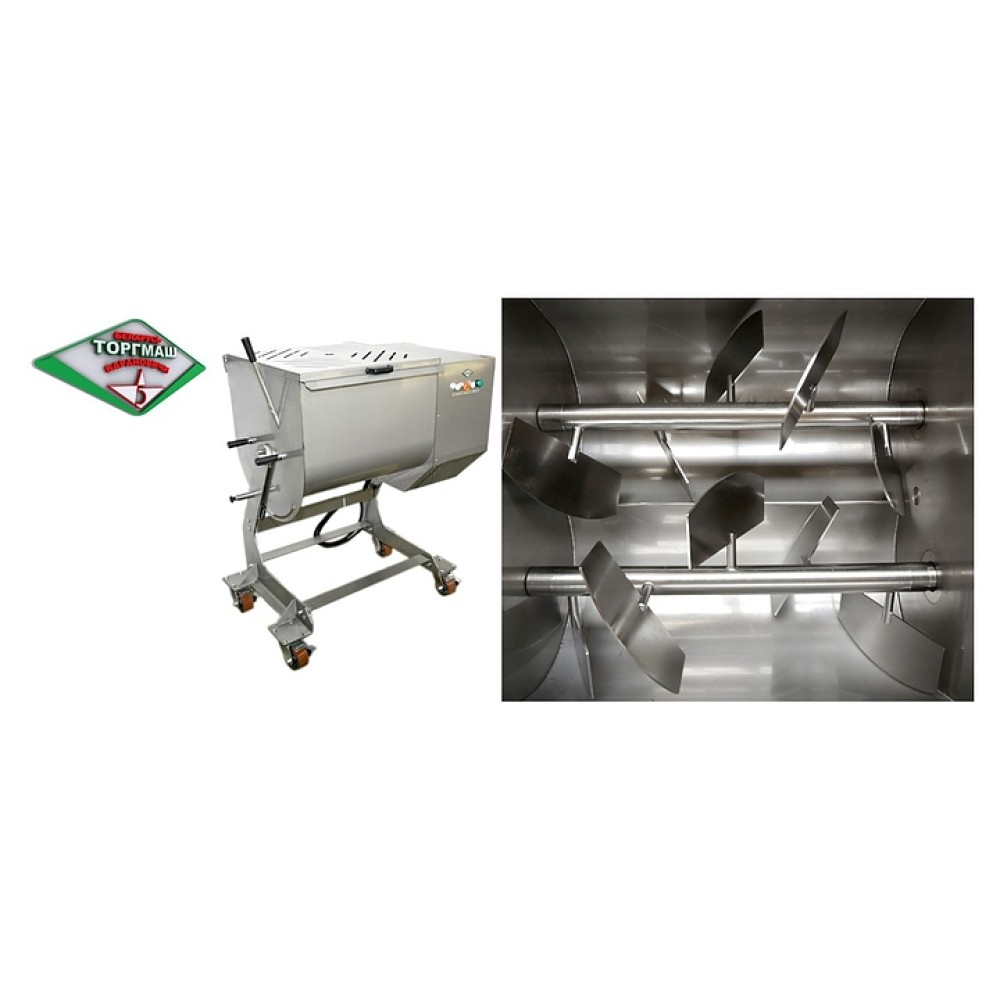 Фаршемешалка БЕЛТОРГМАШ МПФ-100.В2 используется на предприятиях общественного питания и торговли для равномерного перемешивания для перемешивания фарша, мяса в кусках массой до 0,5 кг, а также вязких и пастообразных пищевых продуктов с компонентами. Модель оснащена 2 ворошителями, опрокидывающимся бункером, крышкой с отверстиями-дозаторами и концевым выключателем и колесиками со стопором. Корпус и ворошитель выполнены из высококачественной нержавеющей стали.