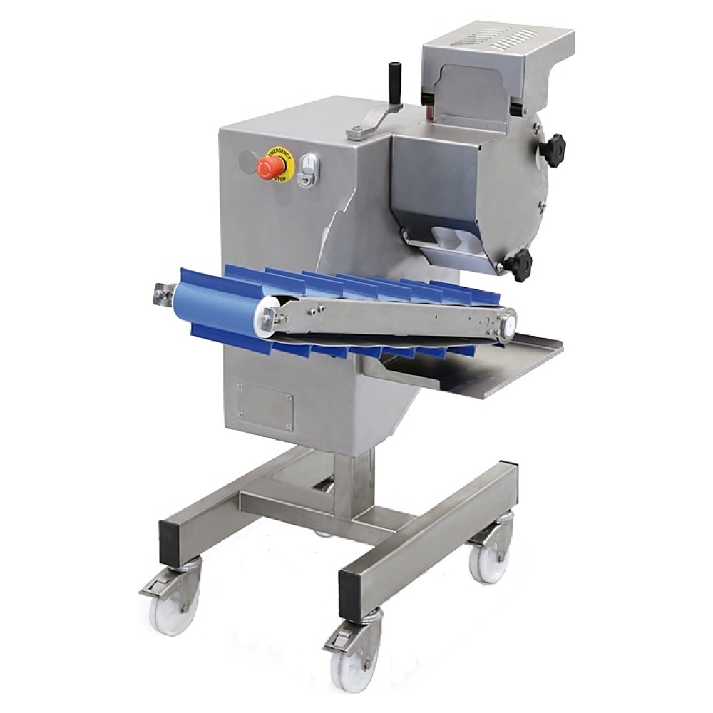 Котлетный автомат Minerva MBF 220 B используется на предприятиях общественного питания и торговли для изменения формы порций на круглую (фрикадельки). Модель оснащена разгрузочной конвейерной лентой с регулировкой высоты, роликовыми и опорными валиками (в форме полумесяца), бесконтактными магнитными микро выключателями, легко снимающимися загрузочным бункером и скребками. Части машины выполнены из анодированного алюминия и нержавеющей стали AISI 304.