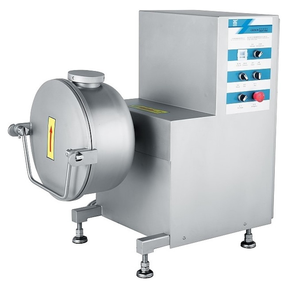 Вакуумный массажер Hualian GRZK20 используется на предприятиях общественного питания и торговли для массирования мяса, рыбы или птицы в процессе маринования и посола. Модель оснащена современным PLC-контроллером, регулируемой скоростью вращения барабана и сенсорной панелью управления. Массажер выполнен из высококачественной пищевой нержавеющей стали.