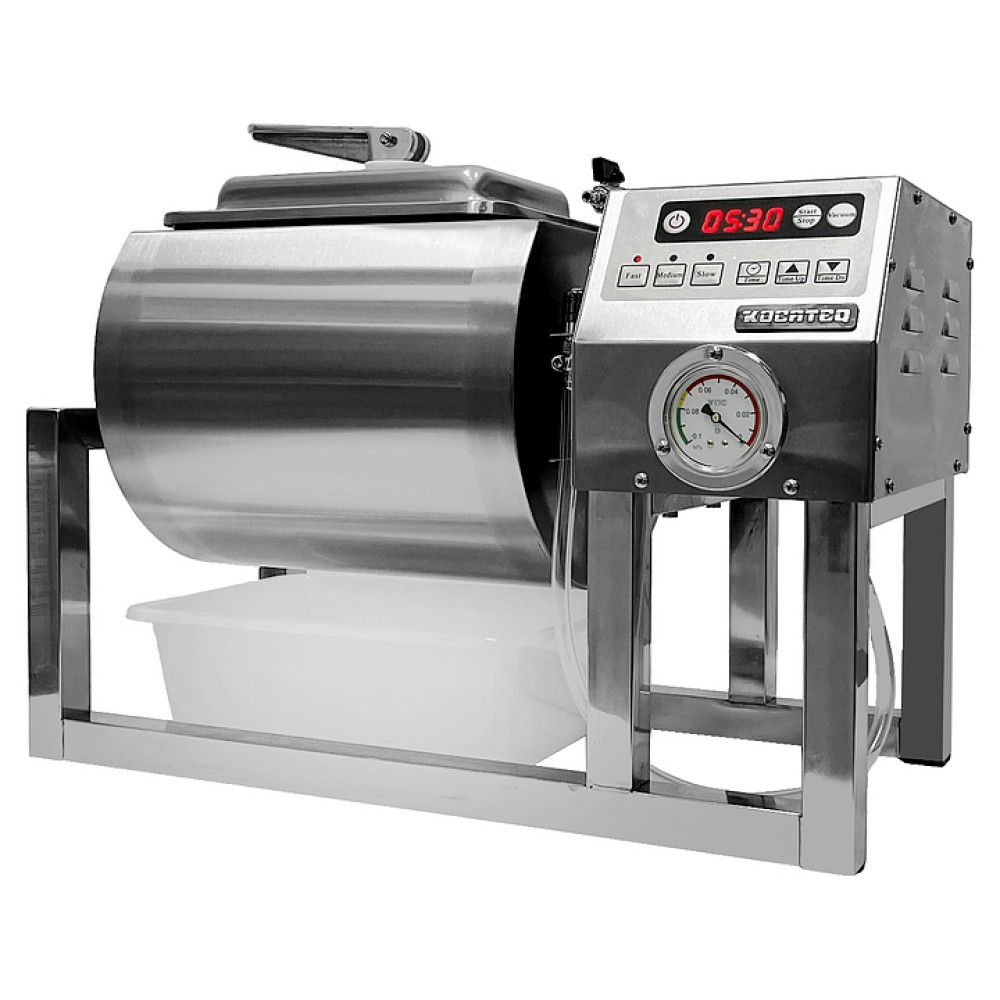 Маринатор Kocateq M 18 Eco Vac используется на предприятиях общественного питания и торговли для быстрого маринования различных видов мяса, птицы и рыбы в автоматическом режиме, за счёт вакуума в барабане структура продукта раскрывается, что позволяет маринаду и специям лучше проникать внутрь. Модель оснащена электронной панелью управления, кнопкой включения, электронным дисплеем для отображения времени работы, кнопкой старт/стоп и кнопками для переключения скоростей, кнопкой вакуумирования. Корпус выполнен из нержавеющей стали Aisi 201, бункер - из нержавеющей стали Aisi304.