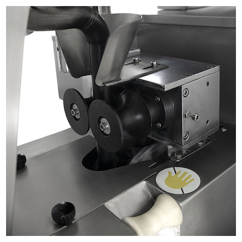 Пельменный аппарат Foodatlas JBL-310 Pro используется на предприятиях общественного питания и торговли для производства замороженных мясных полуфабрикатов в составе пельменной линии. Модель оснащена лопастным насосом, бункером, шнеком, тестовой трубкой и формовочным барабаном с фигурными вырезами. Все детали, контактирующие при работе оборудования с продуктами, выполнены из нержавеющей стали.