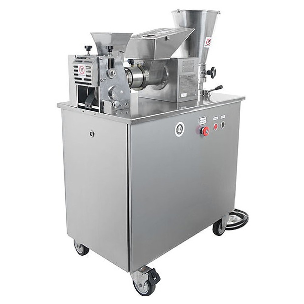 Пельменный аппарат Foodatlas JGL135-6A используется на предприятиях пищевой промышленности, общественного питания и торговли для производства пельменей, равиоли, вареников и других замороженных мясных полуфабрикатов в форме полумесяца. Модель оснащена двухступенчатым лопастным насосом, формовочным барабаном с функцией автоматической подсыпки муки для предотвращения прилипания теста и опорными колесами с системой стопорных механизмов для блокировки станины. Корпус и станина выполнены из нержавеющей стали.