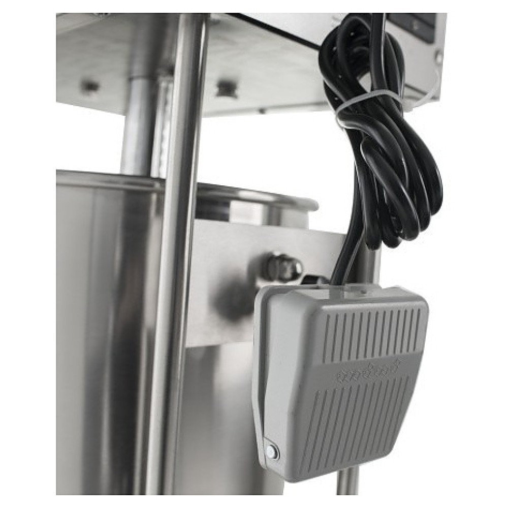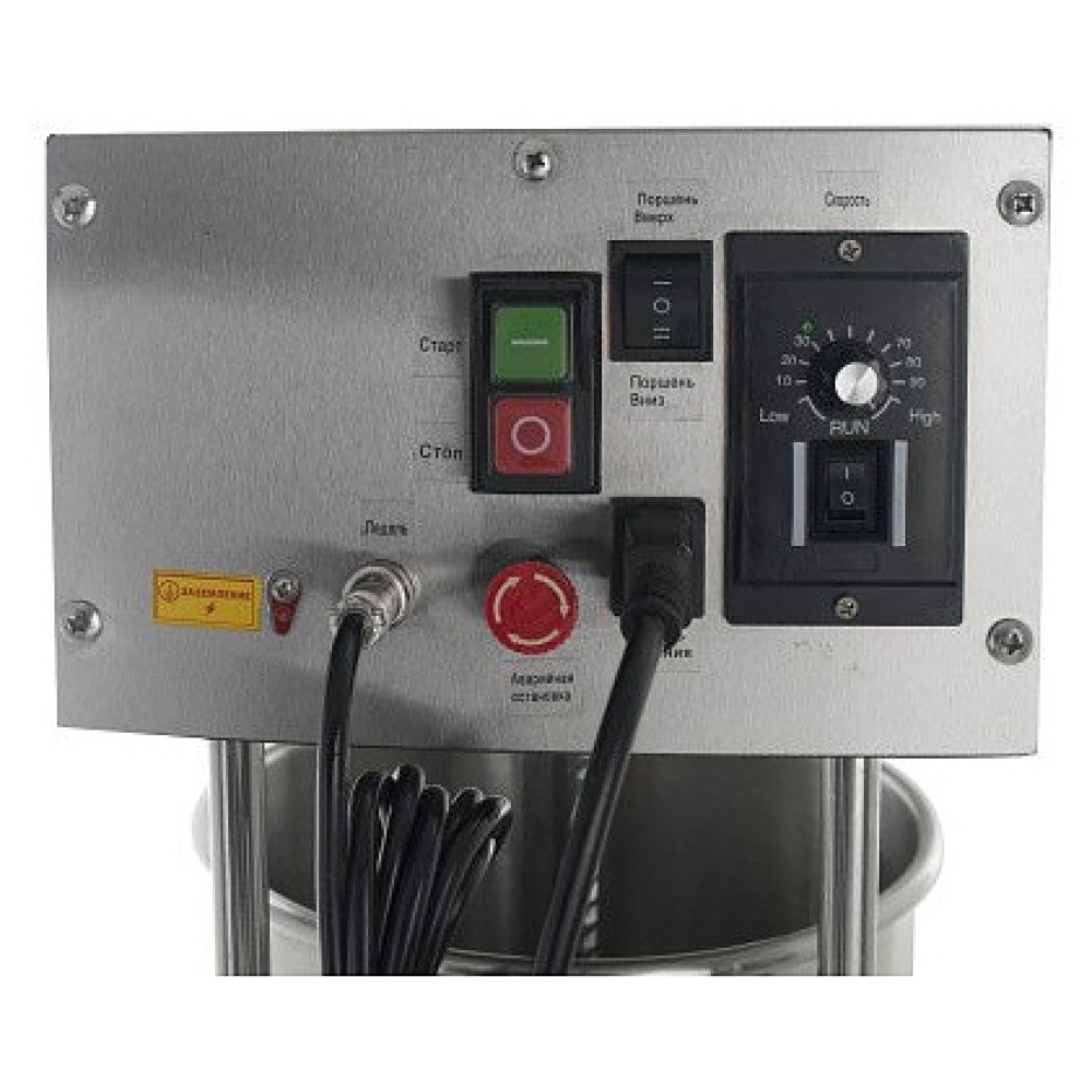 Колбасный шприц Hualian TV-20L используется на предприятиях пищевой промышленности при производстве колбасных изделий и аналогичных продуктов для наполнения начинкой подготовленных оболочек. Модель оснащена электромеханической панелью управления. Корпус и насадки выполнены из высококачественной нержавеющей стали марки AISI304.