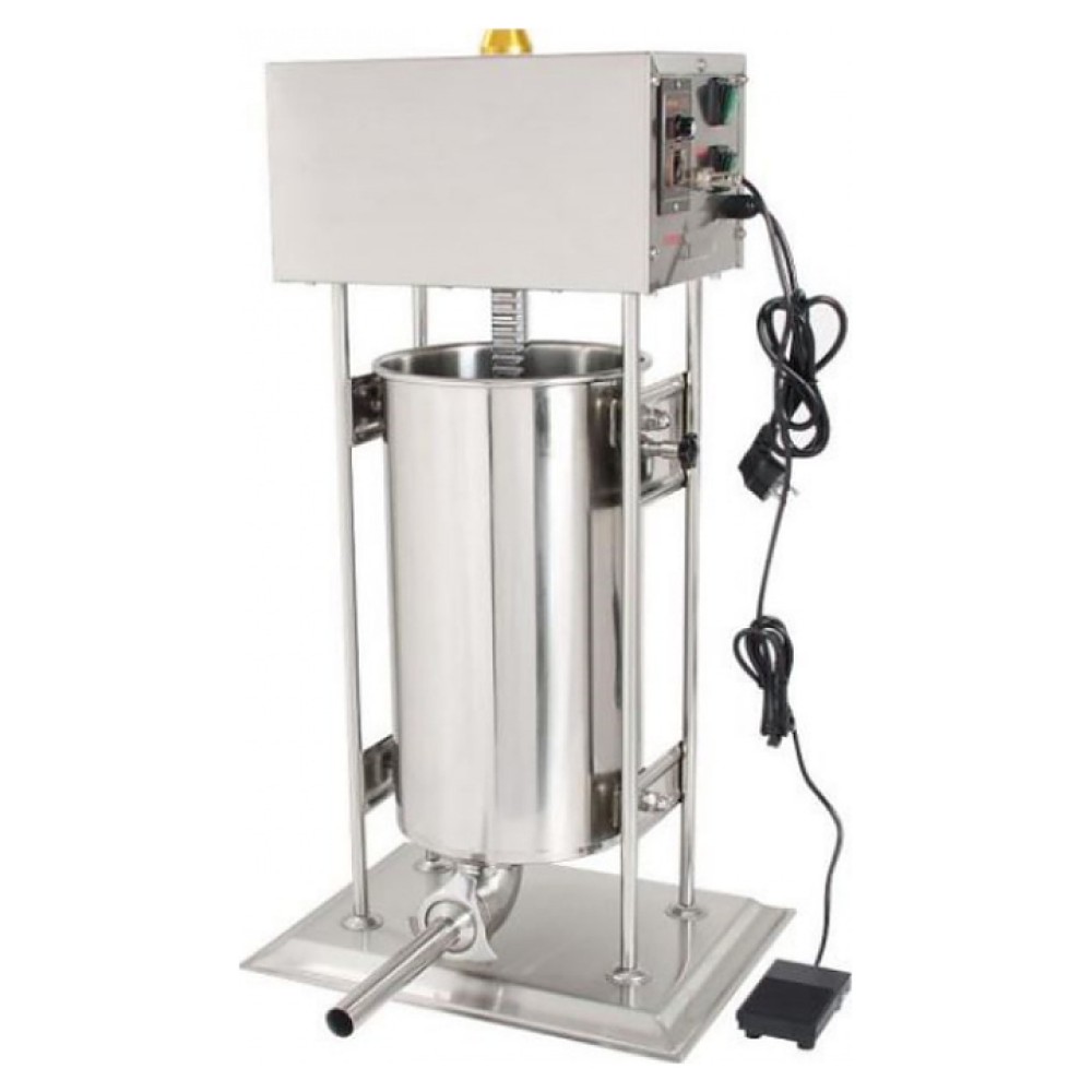 Колбасный шприц Hualian TV-25L используется на предприятиях пищевой промышленности при производстве колбасных изделий и аналогичных продуктов для наполнения начинкой подготовленных оболочек. Модель оснащена электромеханической панелью управления. Корпус и насадки выполнены из высококачественной нержавеющей стали марки AISI304.