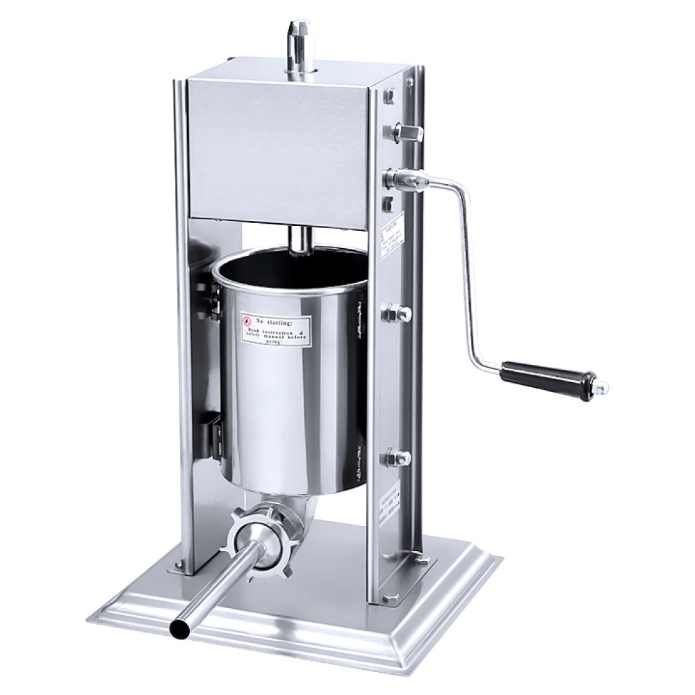 Ручной колбасный шприц Hualian TV-3L используется на производственных площадках, предприятиях пищевой промышленности, общественного питания и торговли для наполнения оболочек мясом, паштетом, мягким маслом, творогом и другими различными начинками. Модель имеет вертикальное исполнение. Корпус и все соприкасающиеся с продуктом элементы выполнены из нержавеющей стали.