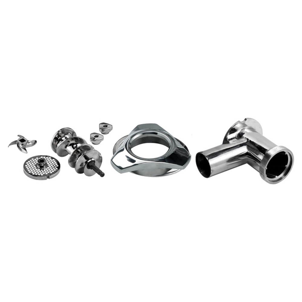 Мясорубка FIMAR 12/TS предназначена для измельчения мяса и рыбы на фарш, повторного измельчения котлетной массы и набивки колбас на предприятиях общественного питания и торговли. Модель оснащена режущей системой Enterprise, съемным режущим узлом, зубчатым редуктором в масляной ванне. Внутренние детали съемные, что удобно для их мытья в посудомоечной машине. Корпус выполнен из полированного алюминия, самозатачивающийся нож, решетка, бункер и извлекаемый режущий узел - из нержавеющей стали.