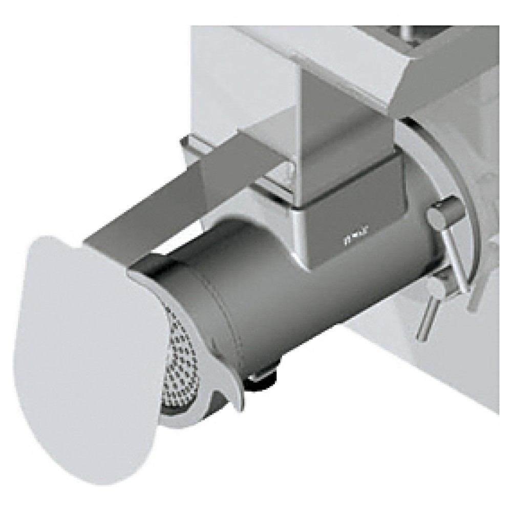 В комплект поставки входят подрезная решетка, 2 двусторонних ножа, 2 решетки с отверстиями (крупная и мелкая), подставка на колесах с тормозом и инструмент для извлечения винта и решеток. Корпус, бункер, и мясорубочная часть выполнены из нержавеющей стали, стержень винта - из закаленной нержавеющей стали.