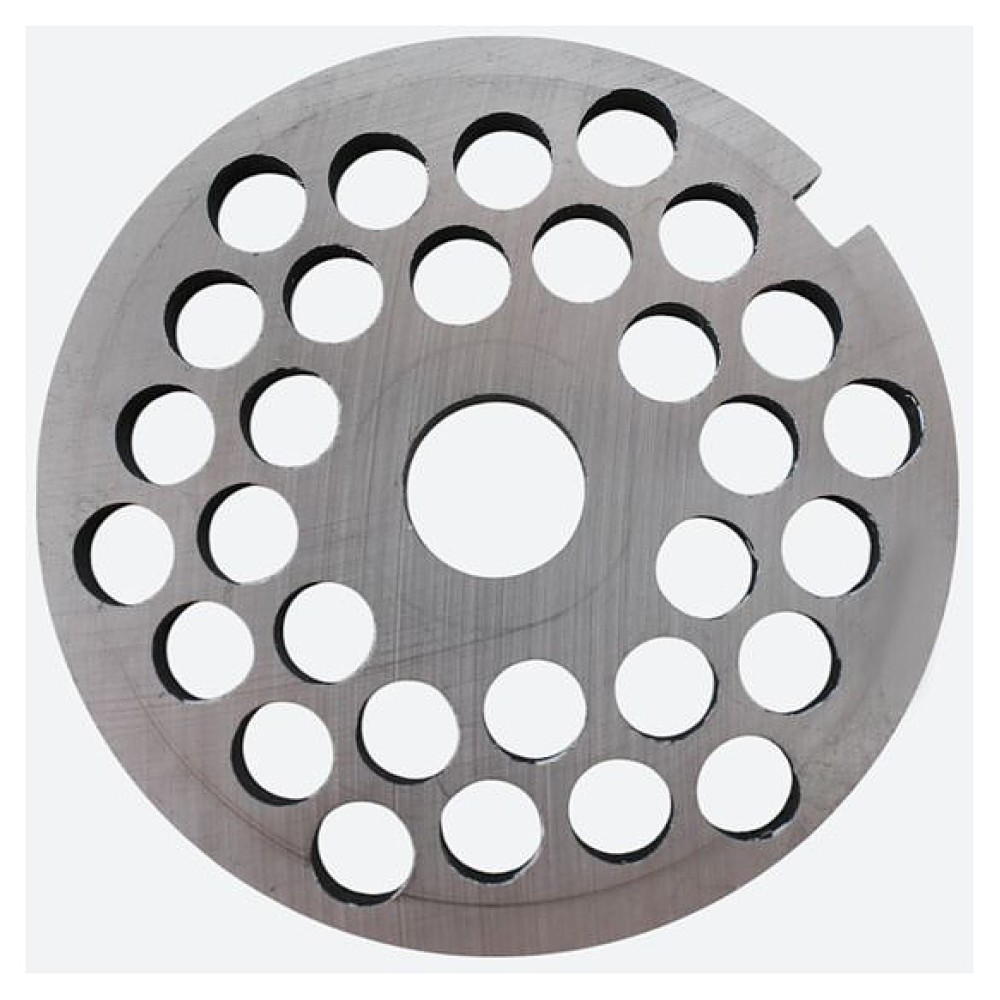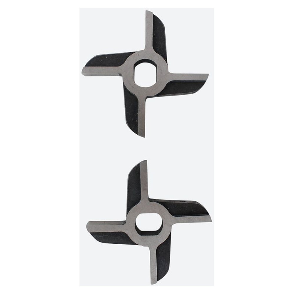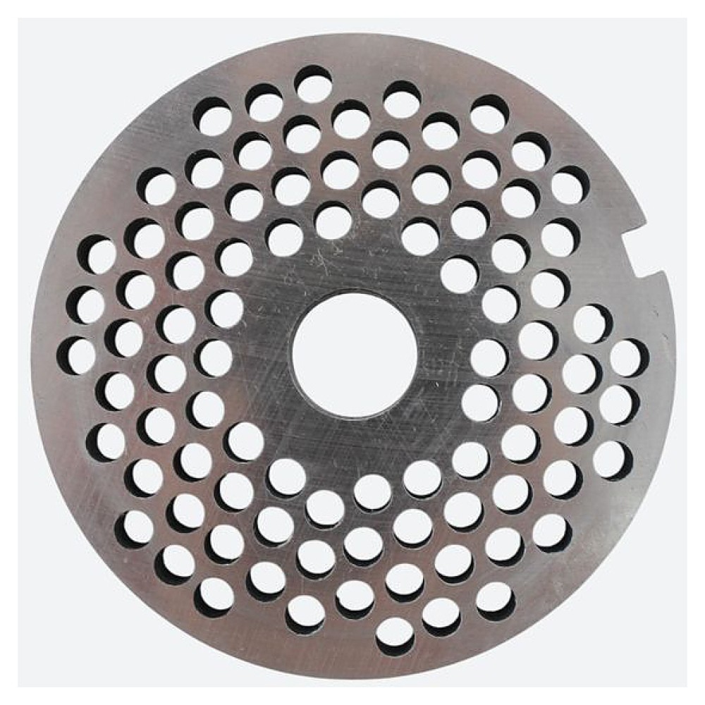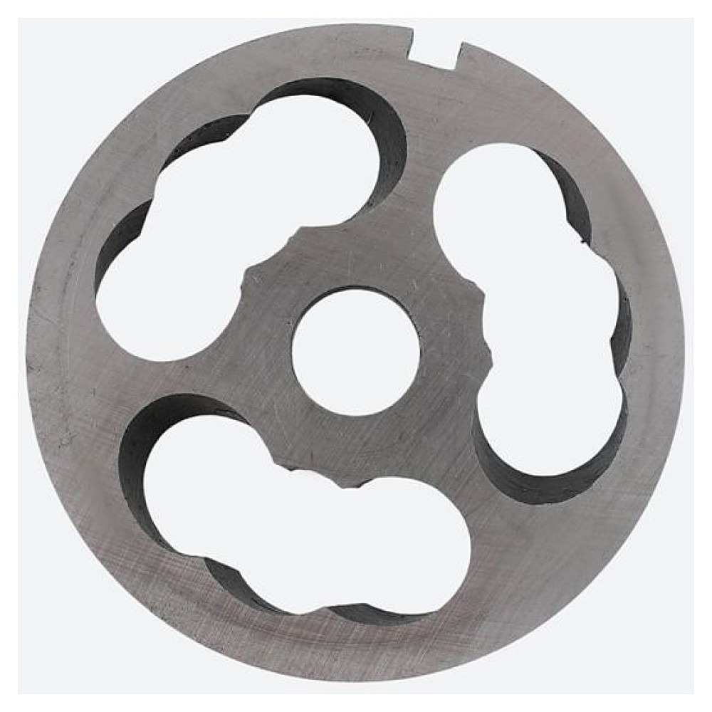 В комплект поставки входят нож подрезной, 2 двусторонних ножа, 2 решетки с отверстиями (№2 и № 3), насадка для колбас и толкатель.