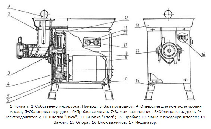 * Производительность мясорубки указана при измельчении говяжьего мяса 2-го сорта через две решетки с отверстиями диаметром 9 и 5 мм.