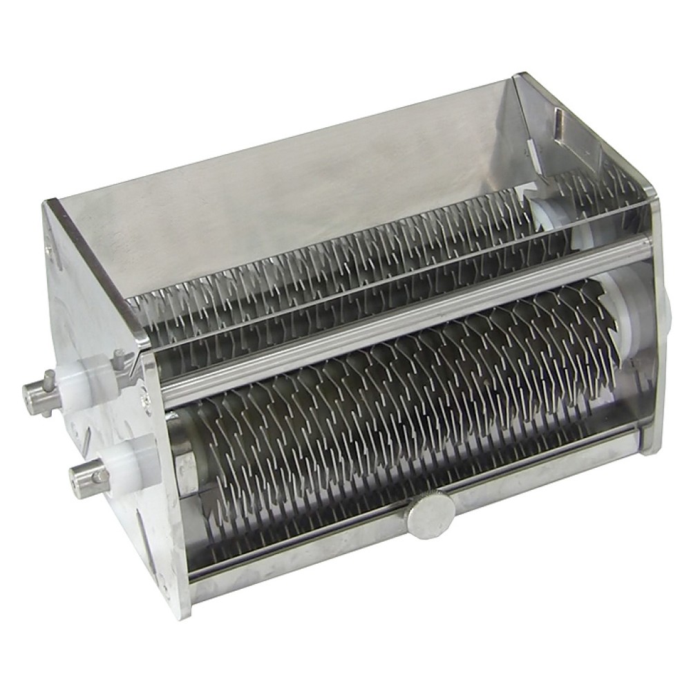 Мясорыхлитель-тендерайзер Kocateq JG+JG-TDA предназначен для прорезания твердых жил и волокон кусков мяса, сшивания обрезков мяса, используемого для приготовления стейков на предприятиях общественного питания и торговли. Модель оснащена аналоговой панелью управления и ножками, обеспечивающими надежную фиксацию прибора на столе. Корпус привода и насадка выполнены из нержавеющей стали, ножки - из пластика.