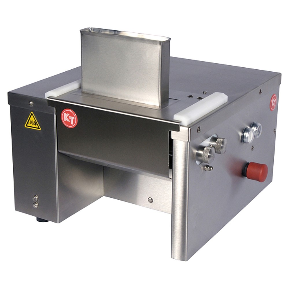 Мясорыхлитель-тендерайзер Koneteollisuus Oy (KT) PK предназначен для рыхления мяса и рыбы, изготовления отбивных и стейков на предприятиях пищевой промышленности и торговли. Мотор останавливается автоматически, если кожух снимается при работающем двигателе. Ножи и предохранительная крышка съемные и моются в посудомоечной машине. Корпус изготовлен из нержавеющей стали.