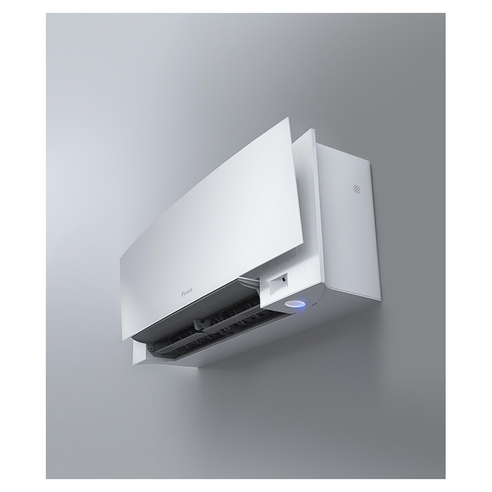 Настенная сплит-система Daikin FTXJ25AW / RXJ25A серии EMURA используется для создания максимально кофмортных условий микроклимата в жилых, офисных и коммерческих помещениях. Модель состоит из внутреннего блока FTXJ25AW и наружного блока RXJ25A. Наружный блок оснащен теплообменником, 3-лопастным вентилятором, защитными решеткой и крышкой для сервисных вентилей, внутренний блок – теплообменником, подвижными вертикальными и горизонтальными жалюзи, воздухозаборной решеткой, откидной лицевой панелью и электронным блоком управления с контрольным светодиодным индикатором, пульт – информативным жидкокристаллическим дисплеем и кнопочной клавиатурой. Облицовка внутреннего блока выполнена из пластика с матовой белой поверхностью, корпус пульта прямоугольно ориентированной формы – из ударопрочного пластика с поверхностью в тон внутреннего блока.