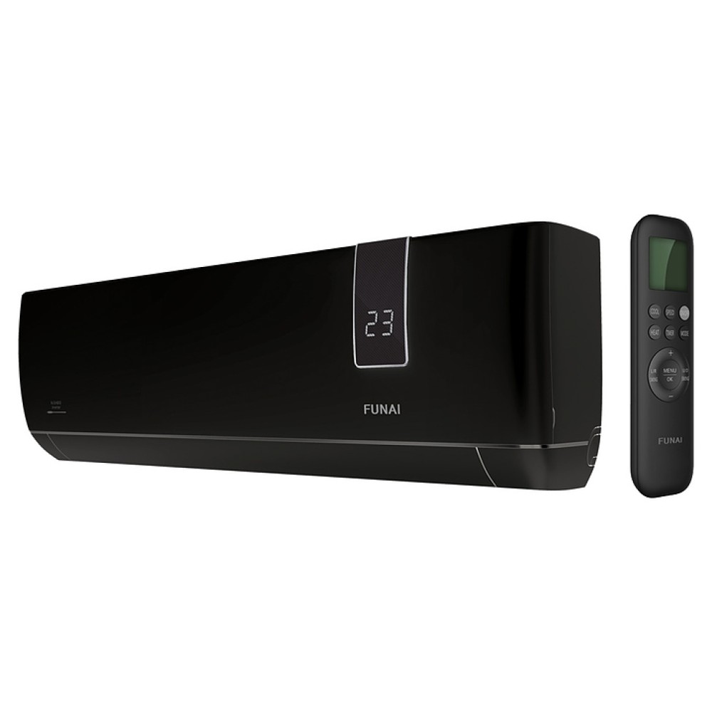 Настенная сплит-система FUNAI BUSHIDO Inverter RAC-I-BS30HP.D01 используется для создания максимально кофмортных условий микроклимата в жилых, офисных и коммерческих помещениях. Модель состоит из внутреннего блока RAC-I-BS30HP.D01/S и наружного блока RAC-I-BS30HP.D01/U. Наружный блок оснащен защитными вентиляционной решеткой и крышкой для вентилей, внутренний блок – воздухозаборной решеткой, откидной фронтальной крышкой, подвижной горизонтальной заслонкой и электронным блоком управления, пульт – информативным жидкокристаллическим дисплеем и кнопочной клавиатурой. Облицовка внутреннего блока выполнена из пластика с поверхностью черного цвета, корпус пульта – из ударопрочного черного пластика, теплообменник наружного блока с антикоррозийным покрытием Blue Fin.